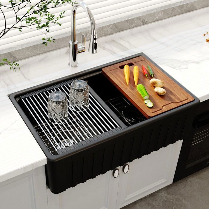 MEJE 838 x 508 cm en céramique noir tablier - evier timbre- avant étape jante poste de travail ferme évier de cuisine cuve