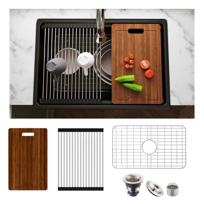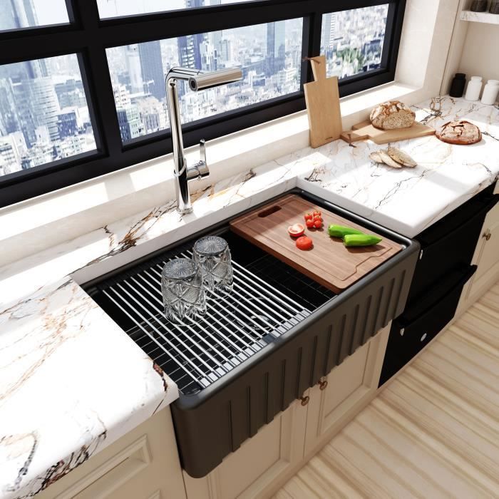 MEJE 762 x 508 cm évier de cuisine de poste de travail de ferme - Evier timbre - avant à tablier simple réversible - noir