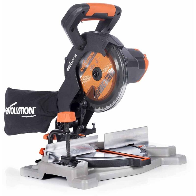 Evolution Power Tools - Scie à Onglet Mixte Multi-Matériaux R210CMS, 210 mm (230 V) & Lame Polyvalente en Carbure de Tungstène Rage, 210 mm Orange