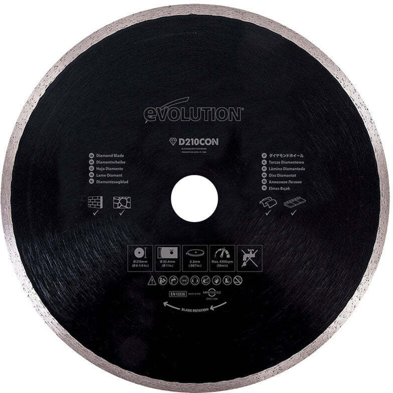 Evolution - Disque diamant 210mm alésage 25,4mm pour Scie à onglet et Scie sur table