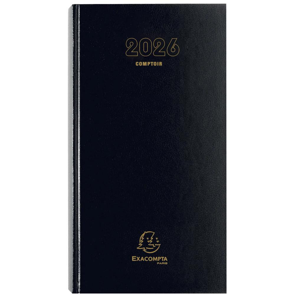 EXACOMPTA Agenda de bureau Banquier long Euro et cents 16 x 34 cm Journalier 2026 - Noir