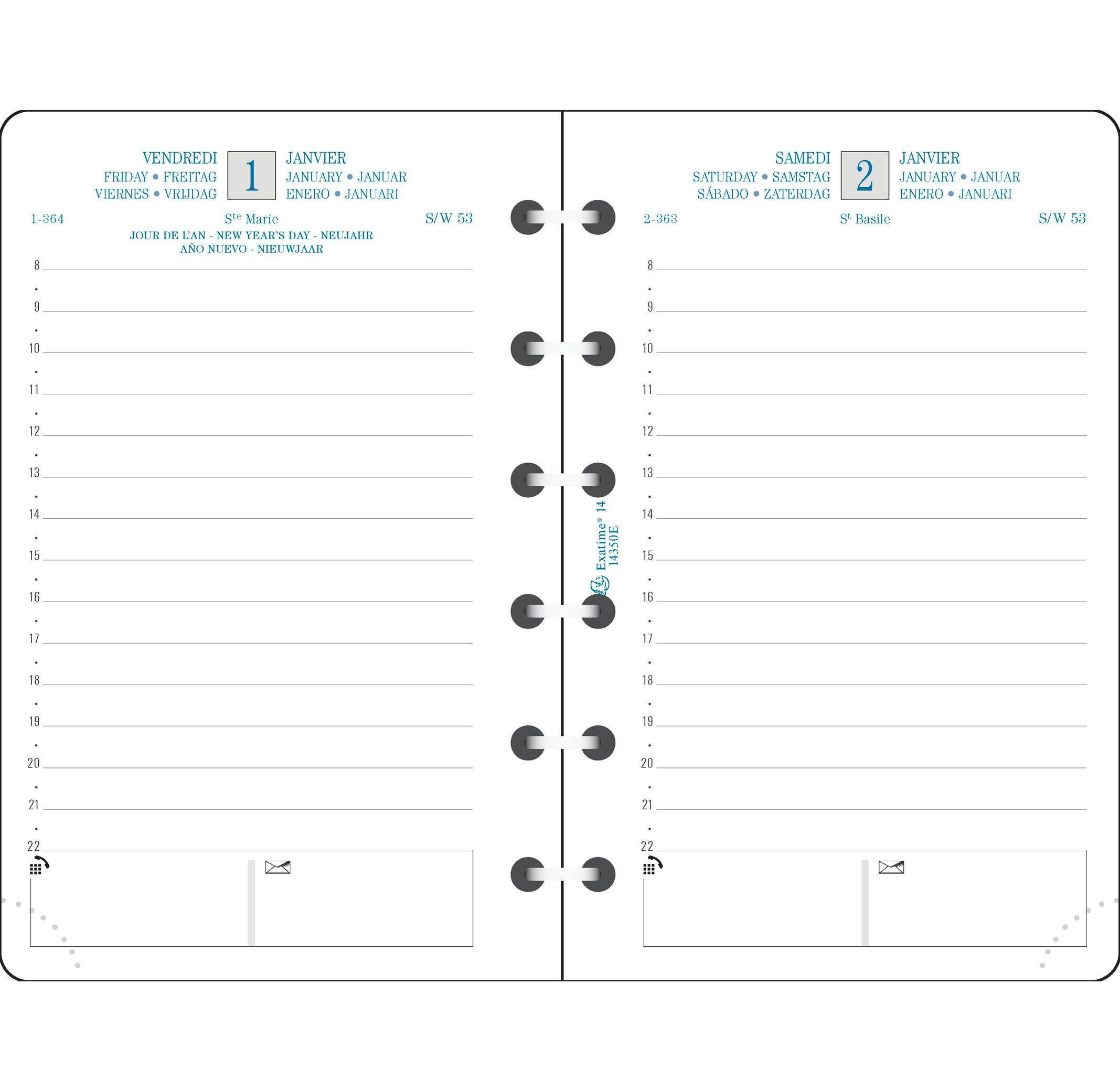 Agenda civil journalier 2024 Exacompta - Bleu canard - 18 x 22,5 cm - La Journée Planifiée 22 Volga