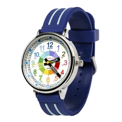 Kiddus Montre Bracelet Éducative pour Enfants, garçon. Time Teacher Analogique avec Exercices. Facile d’Apprendre à Lire l’Heure. Herzen