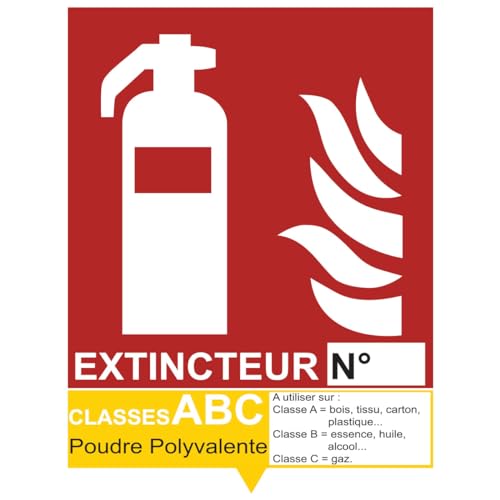 Ambiance Sticker Autocollant Vinyl Signalétique Extincteur Sticker Laminé Plastifié Résistant à l'eau et aux UV Classes ABC Poudre Polyvalente - H20 x L15 cm