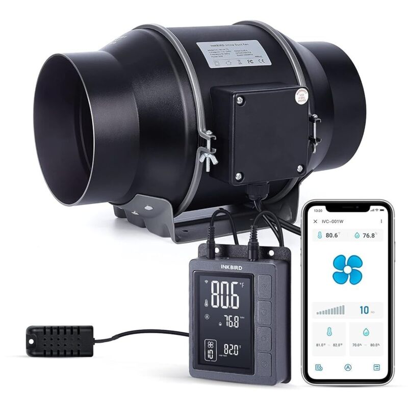 INKBIRD IVC-001W Ventilateur d'extraction Extracteur d'Air de Conduit en ligne de 6 pouces avec Contrôleur température l'humidité