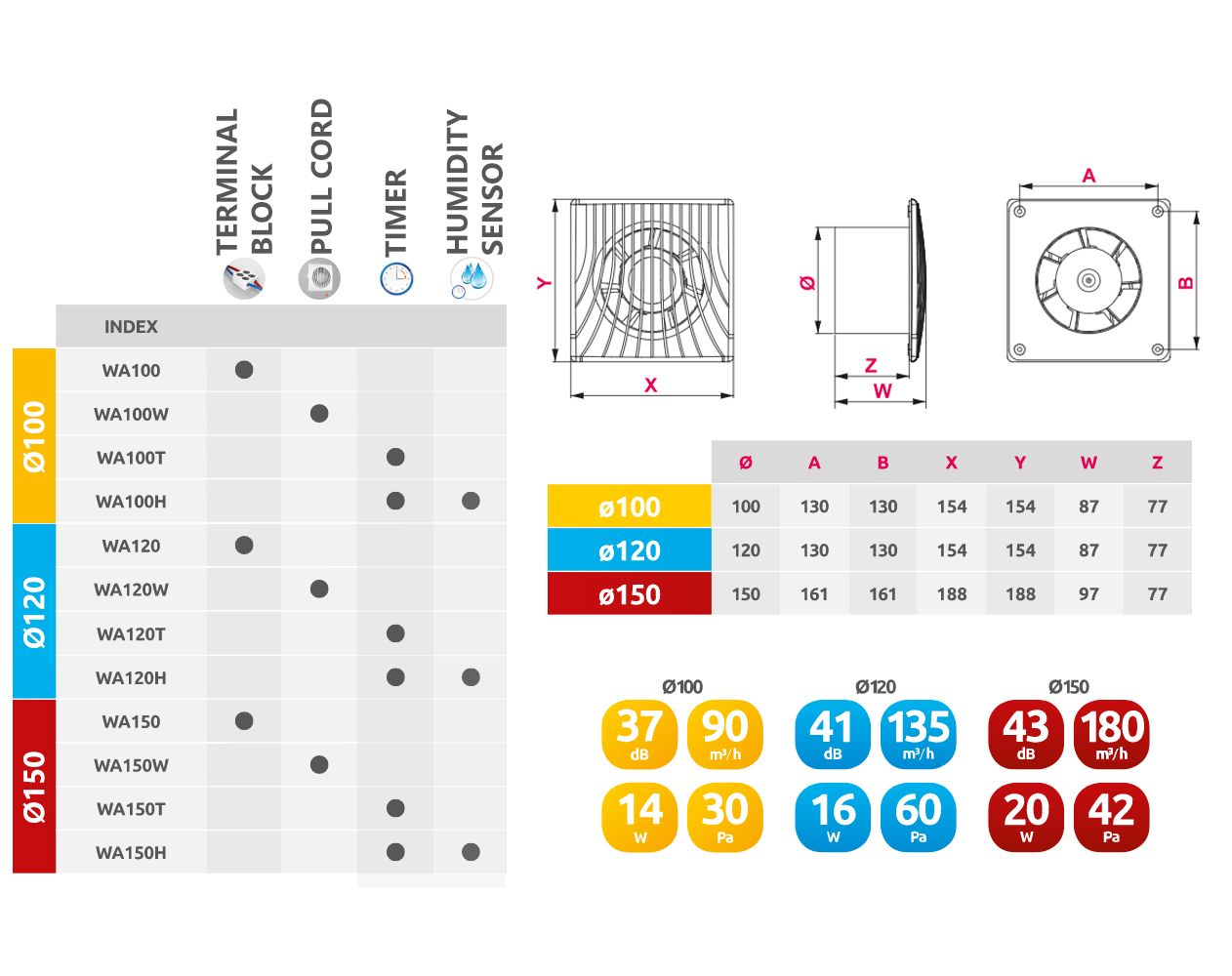 WGB150H Extracteur d'air pour salle de bain avec minuteur, capteur d'humidité et roulement à billes 150 mm
