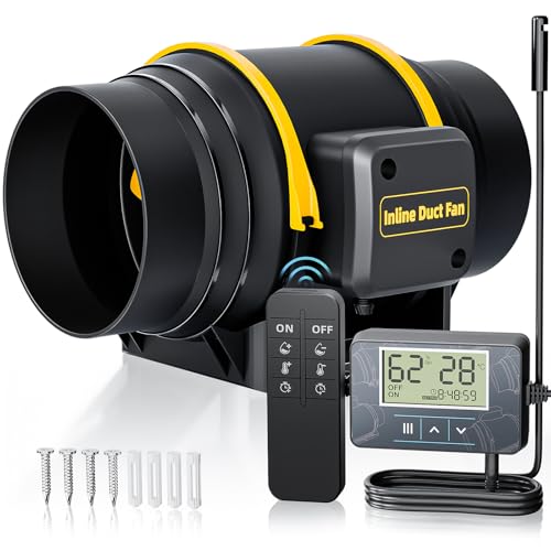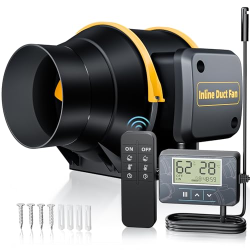 QiCrafe Ventilateur Extracteur d'air 100mm avec Télécommande, 367 m³/h 40W Cuivre Moteur, Minuterie Régulateur de Température et Humidité Minuterie pour Tentes Culture, Hydroponique, Garage, Grenier