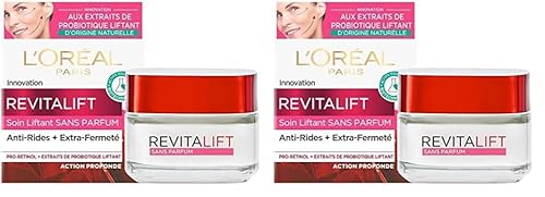 L'Oréal Paris - Crème de Jour Anti-Âge - Soin Jour Anti-Rides & Extra-Fermeté - Aux Extraits de Probiotique Liftant Naturel - Sans Parfum - Tous Types de Peaux - Revitalift - 50 ml (Lot de 2)