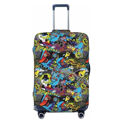 Housse de protection pour valise – Moderne Graffiti Q Version Eyes Soft Fashion Uitcase Cover pour bagages, noir, Medium