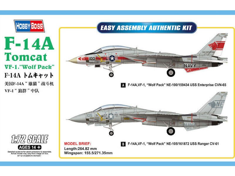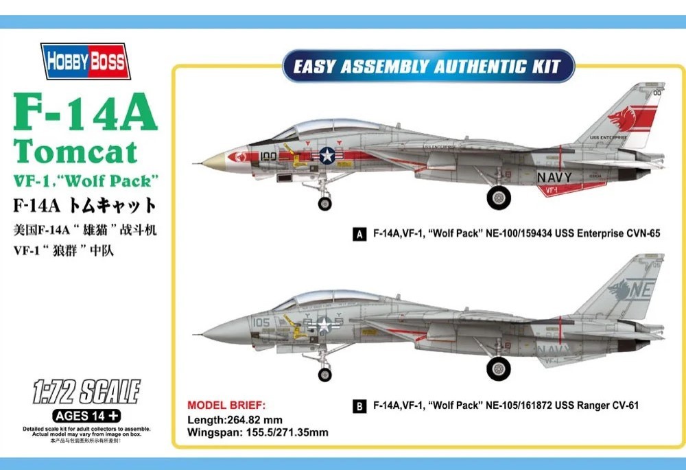 HOBBY BOSS F-14A Tomcat VF-1 Wolf Pack - échelle 1/72 - HOBBY BOSS 80279