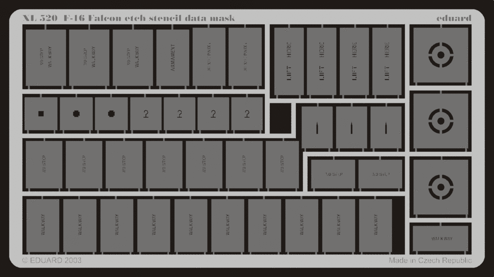 EDUARD XL520 MASK AVION F-16 ETCH STENCIL DATA MASK -ETCH 1/32