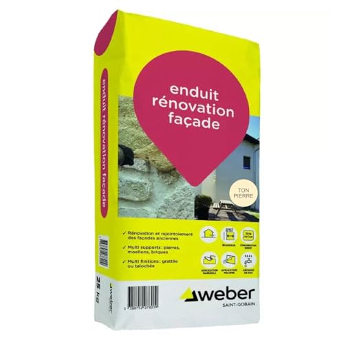 Weber Enduit de rénovation façade extérieur ton pierre 25 kg - d’imperméabilisation et décoration façades
