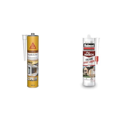 Sika - SikaSeal-183 Façade & Sol, Ton pierre, Mastic Polyurethanne souple pour joints de façade & Rubson - Mastic Maison Façade Effet Crépi (cartouche de 280 ml) – Mastic acrylique pour joint