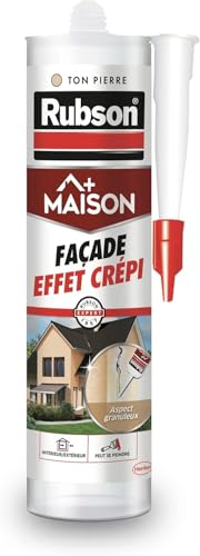 Rubson - Mastic Maison Façade Effet Crépi (cartouche de 280 ml) – Mastic acrylique pour joint, raccordement et rebouchage de fissures sur crépi – Aspect granuleux et ton pierre