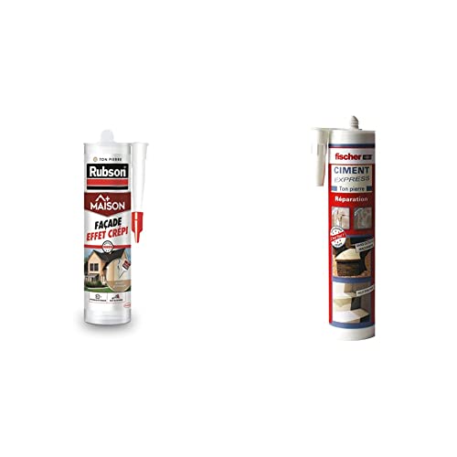 Rubson Maison Mastic Façade Effet Crépi, mastic acrylique pour joint, 280 ml & fischer - Ciment Express Ton Pierre 310ML - 1 cartouche