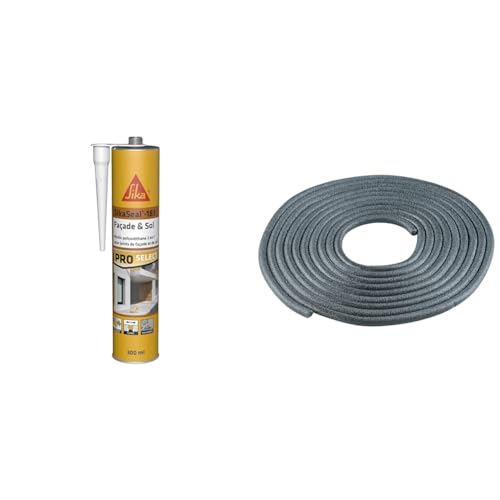 Sika - SikaSeal-183 Façade & Sol, Ton pierre, Mastic Polyurethanne souple pour joints de façade & wolfcraft 4360000 - Fond de Joint - Diamètre 10 mm - Pour Joints de 5 à 8 mm