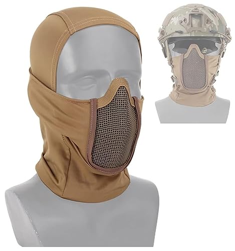 Tactical Hunting Mask Headgear, Military Combat Balaclava Cap Tactical Half Face Steel Mesh Airsoft Paintball Masks for Outdoor Sports, CS Cosplay and Paintball(A)