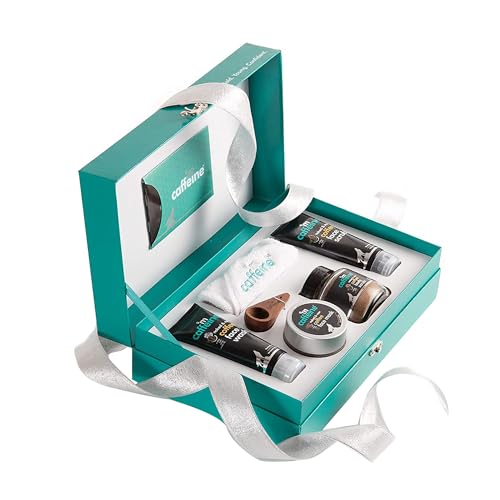 mCaffeine Coffee Mood Skin Care Gift Kit - Personal Care Products - Coffee Face Wash, Mask and Scrub, Body Scrub, Brew Scoop, Towel - 6 pc