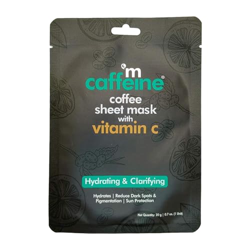 mCaffeine Coffee Sheet Mask with Vitamin C - Hydrating Face Masks with Hyaluronic Acid - Sun Protection - Dark Spot and Pigmentation Reduction - 1 pc