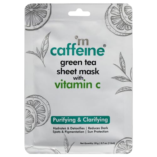 mCaffeine Green Tea Sheet Mask with Vitamin C - Face Mask for Dark Spots Reduction and Pigmentation - Sun Damage Protection with Vitamin C - 1 pc