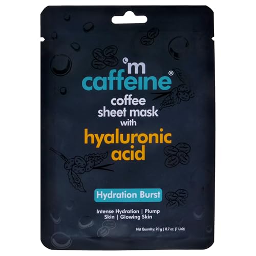 mCaffeine Coffee Sheet Mask with Hyaluronic Acid - Face Mask Skin Care - 24 Hour Hydration - Enhanced Skin Glow and Plumpness - 1 pc