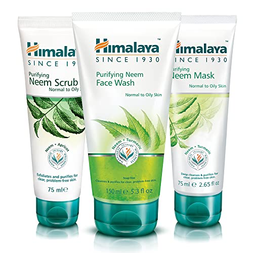 Himalaya Herbals Purifying Neem Face Wash SET with Face Scrub & Face Mask | Natural Moisturising Facial Cleanser with Goodness of Neem and Turmeric, Deeply Cleans Pores and Pimples- Set of 3