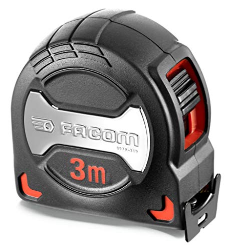 FACOM - Mètre à Ruban 3m x 19mm - 897A.319PB - Boîtier Grip Antidérapant Prise en Main Confortable - Ruban Antireflet Mat - Avec Crochet - Outillage de Chantier Professionnel ou Particulier