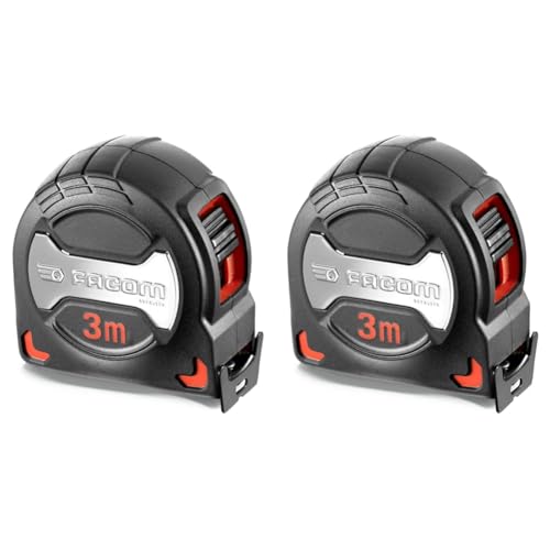 FACOM - Mètre à Ruban 3m x 19mm - 897A.319PB - Boîtier Grip Antidérapant Prise en Main Confortable - Ruban Antireflet Mat - Avec Crochet - Outillage de Chantier Professionnel ou Particulier (Lot de 2)