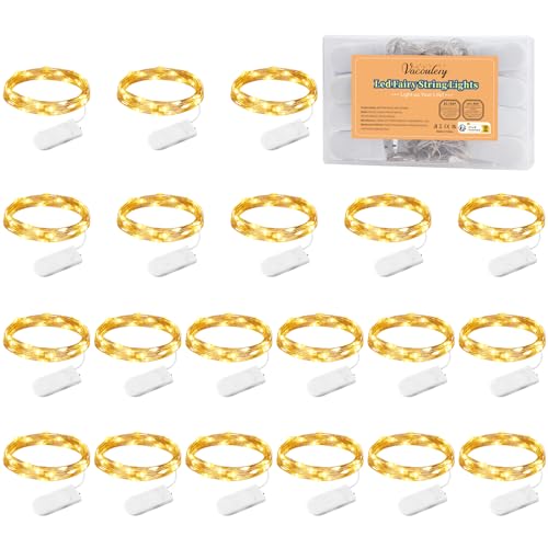 Guirlande Lumineuse à Pile, 1M 10 LED Mini Guirlande LED Fil de Cuivre Fairy Lights Girlande Lumière pour Décoration Intérieur Chambre, Ambiance Intérieur Maison, Mariage (Blanc Chaud) (20 Pièces)