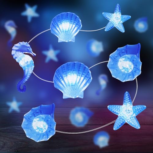 ABOHU Guirlande Lumineuse Coquillages, 2 m 20 LED Motif Animaux Marins, Fairy Lights Decoration, Guirlandes Lumineuses Interieur Décorative à Piles pour Chambre à Coucher, Chambre D'enfant