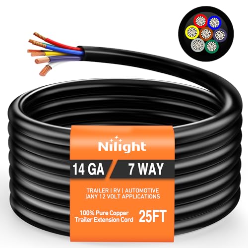 Nilight Câble d'extension de câble de remorque 7 voies calibre 14 7 conducteurs 100% cuivre pur, isolé à haute résistance, résistant aux intempéries pour 7 broches de lame de caravane