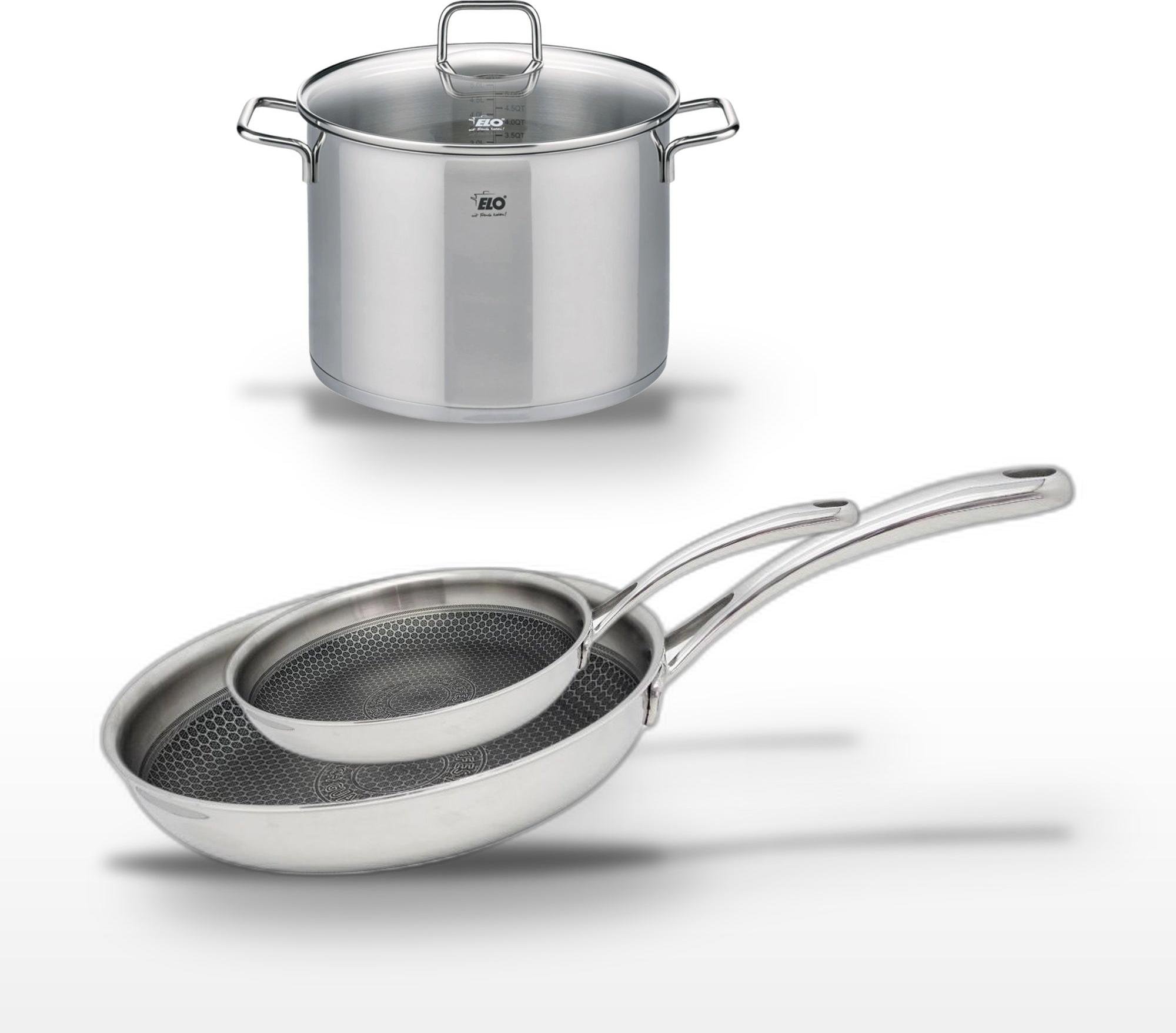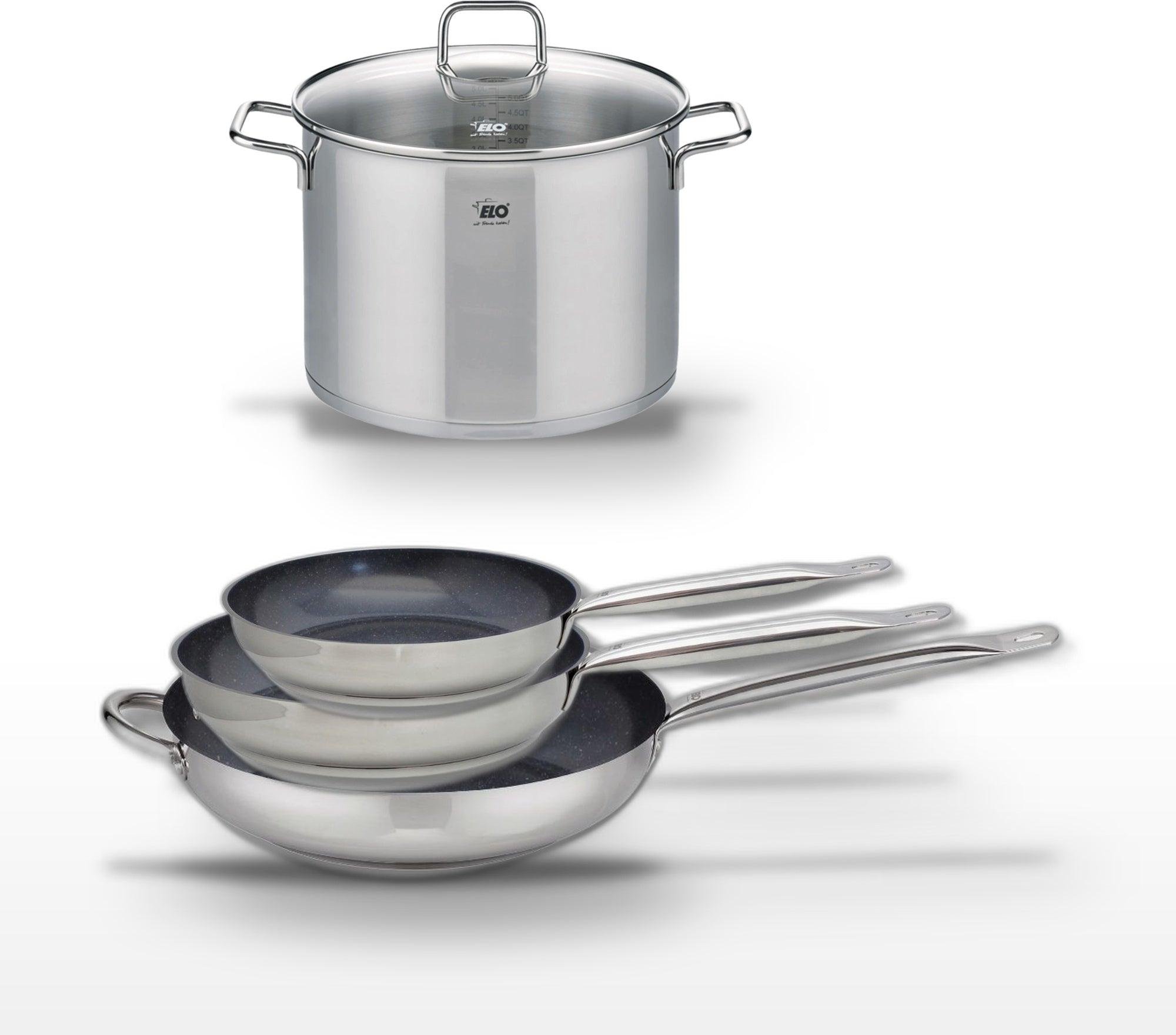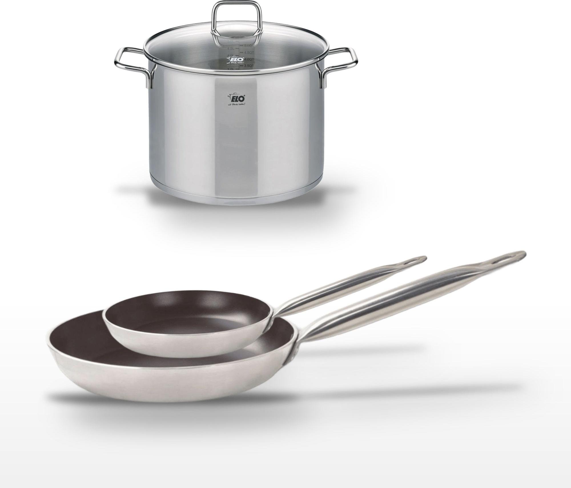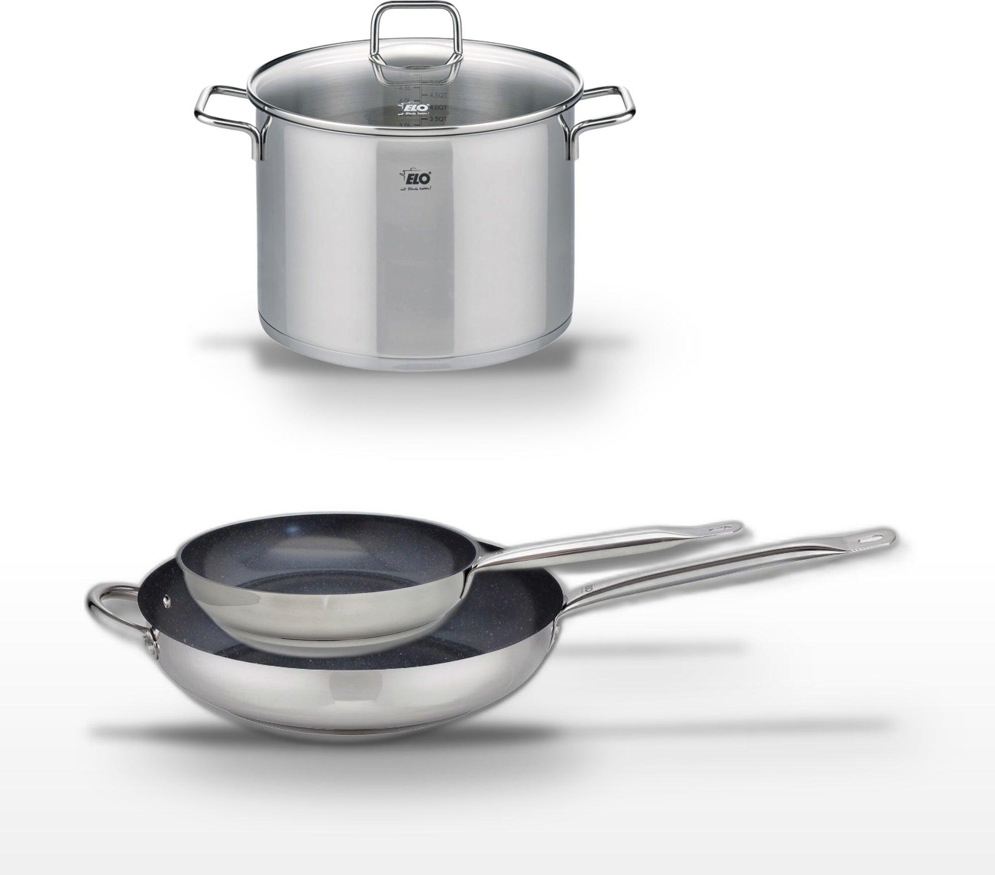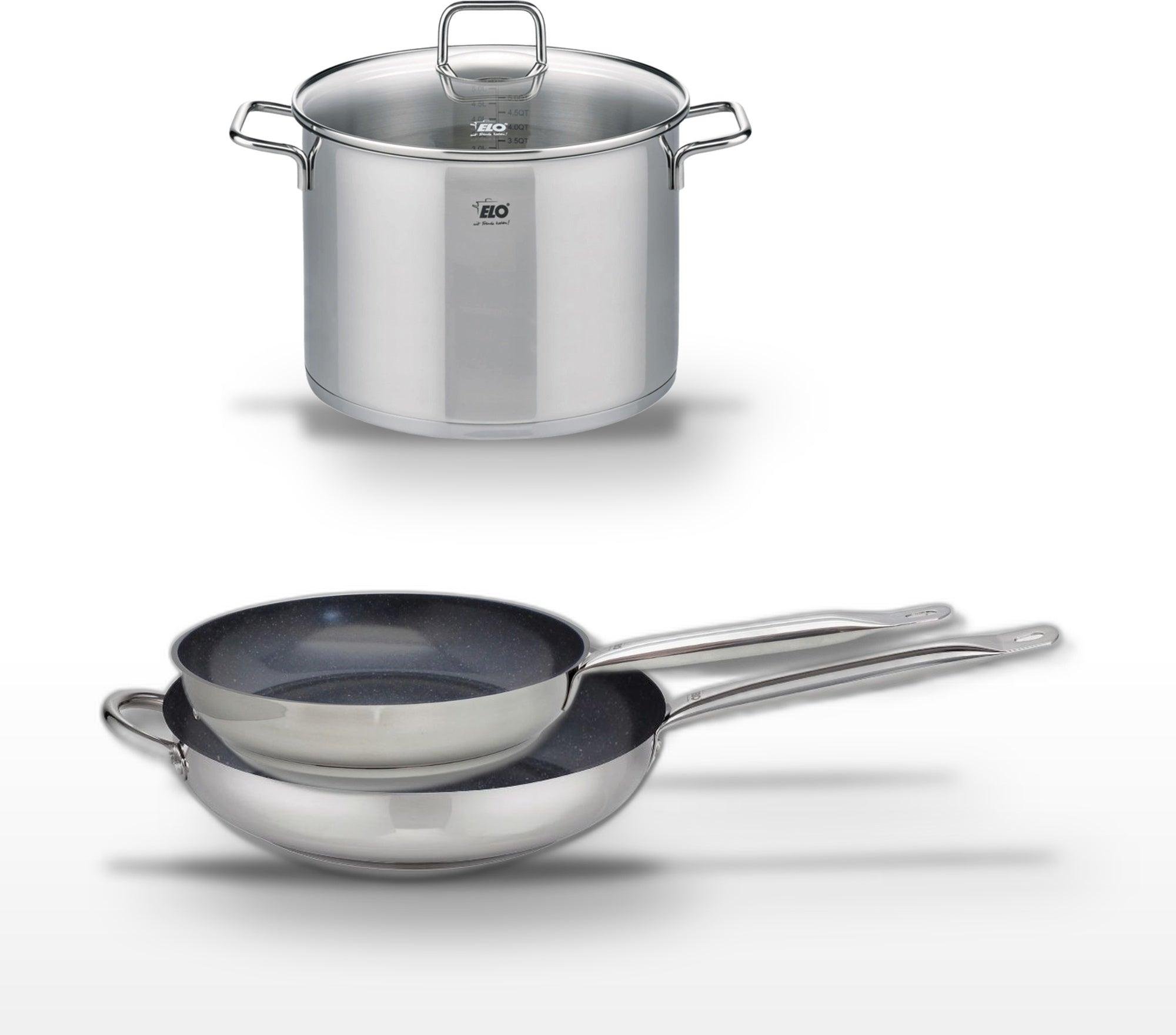 Lot de 3 Poêles céramique sans PFAS 24/28/32 cm Elo Profi Therm Platinum et Faitout 26 cm Elo Citrin