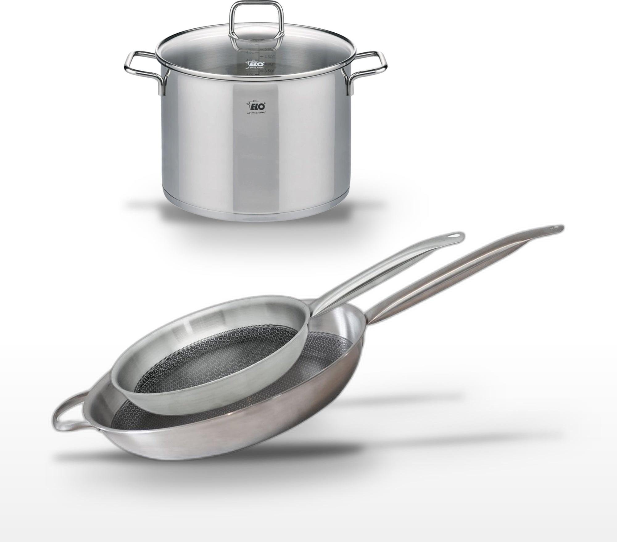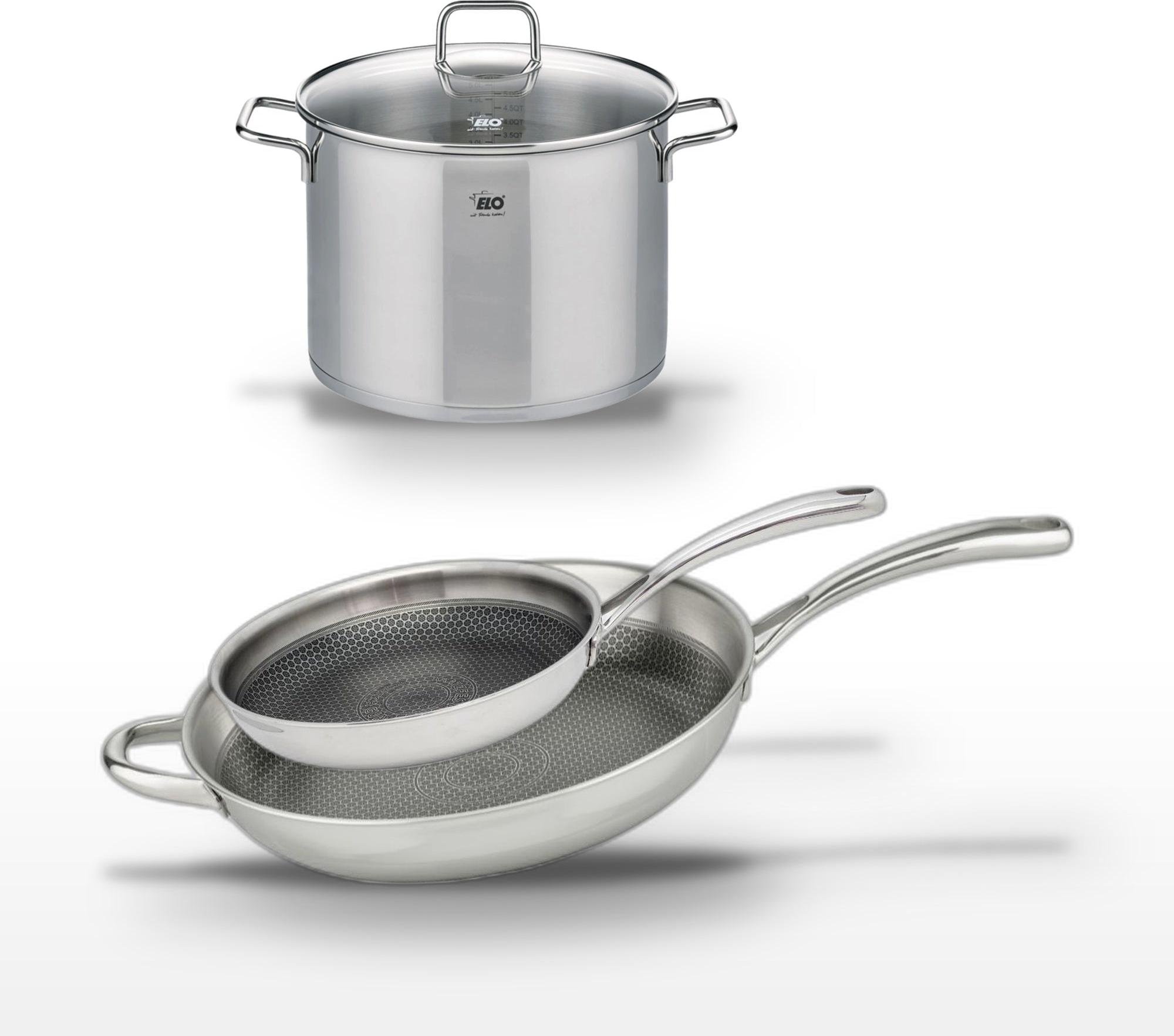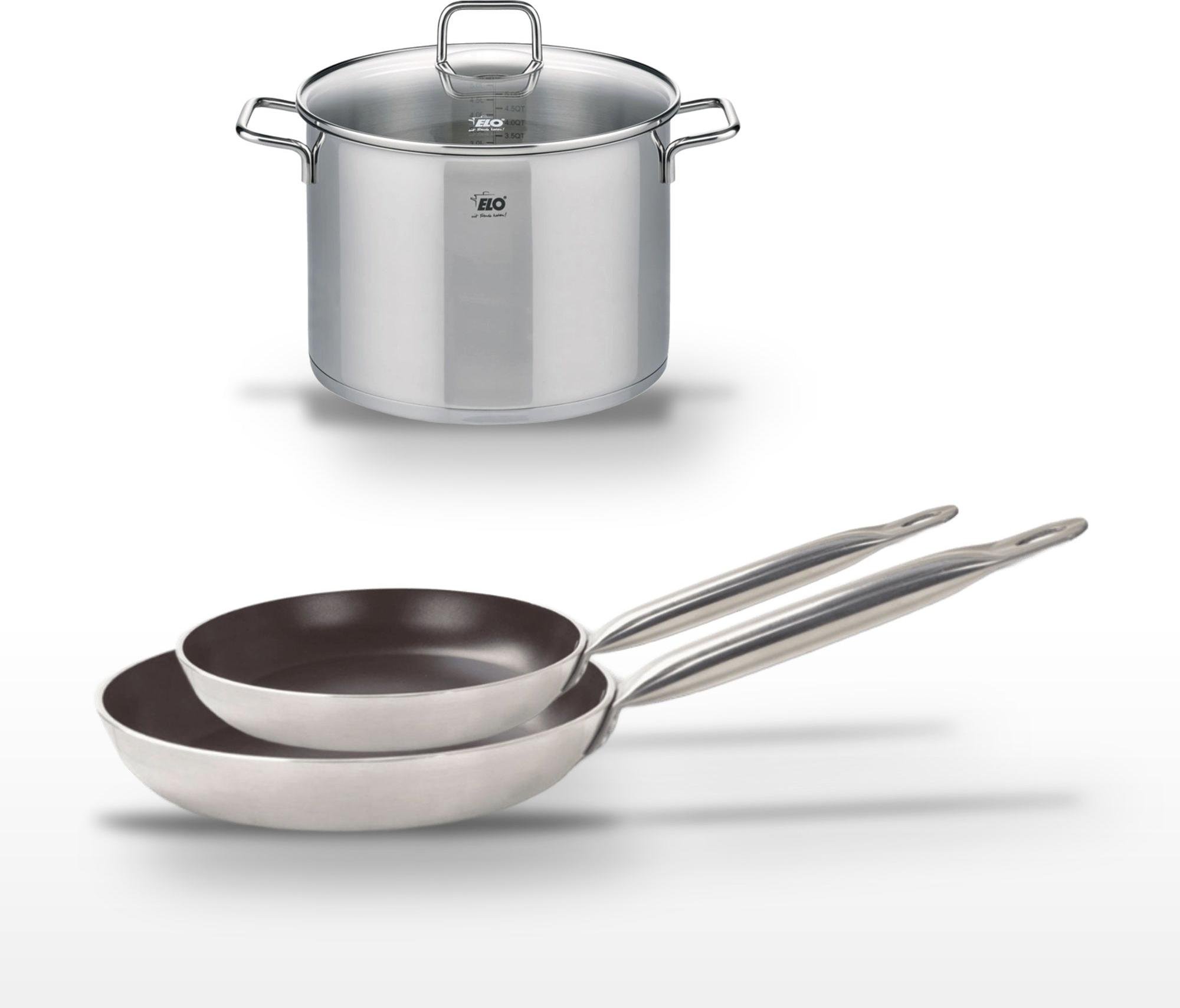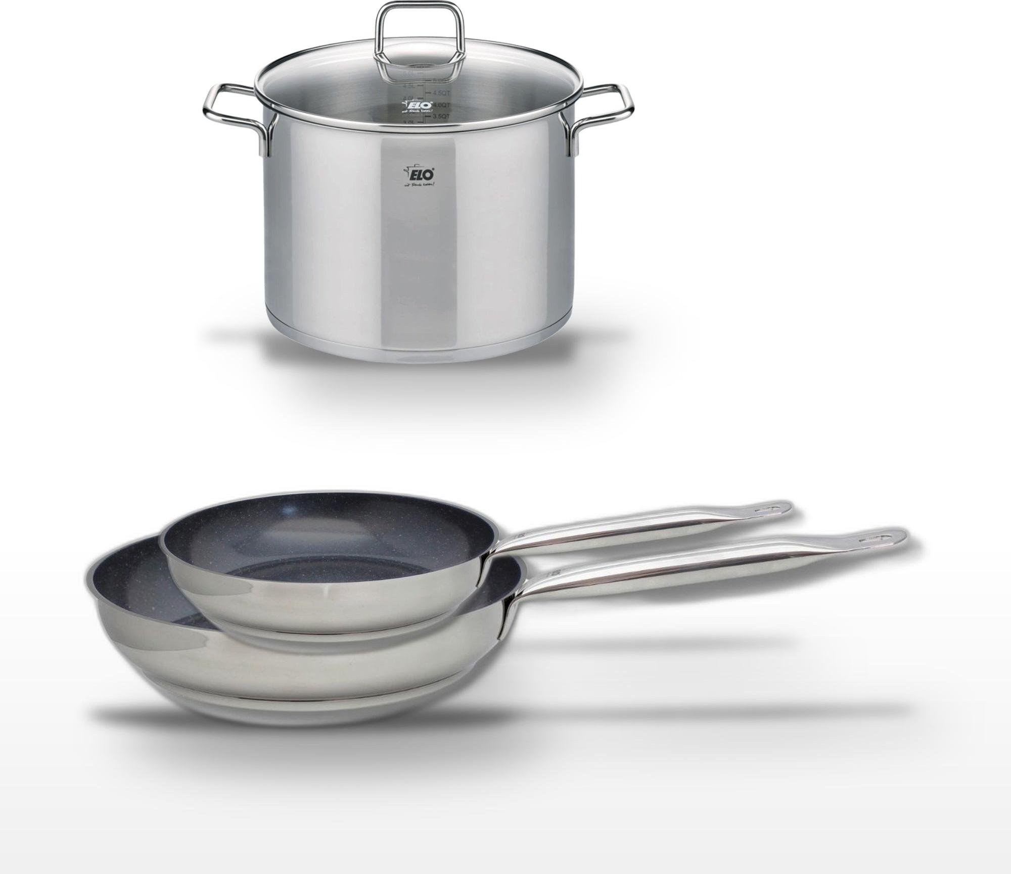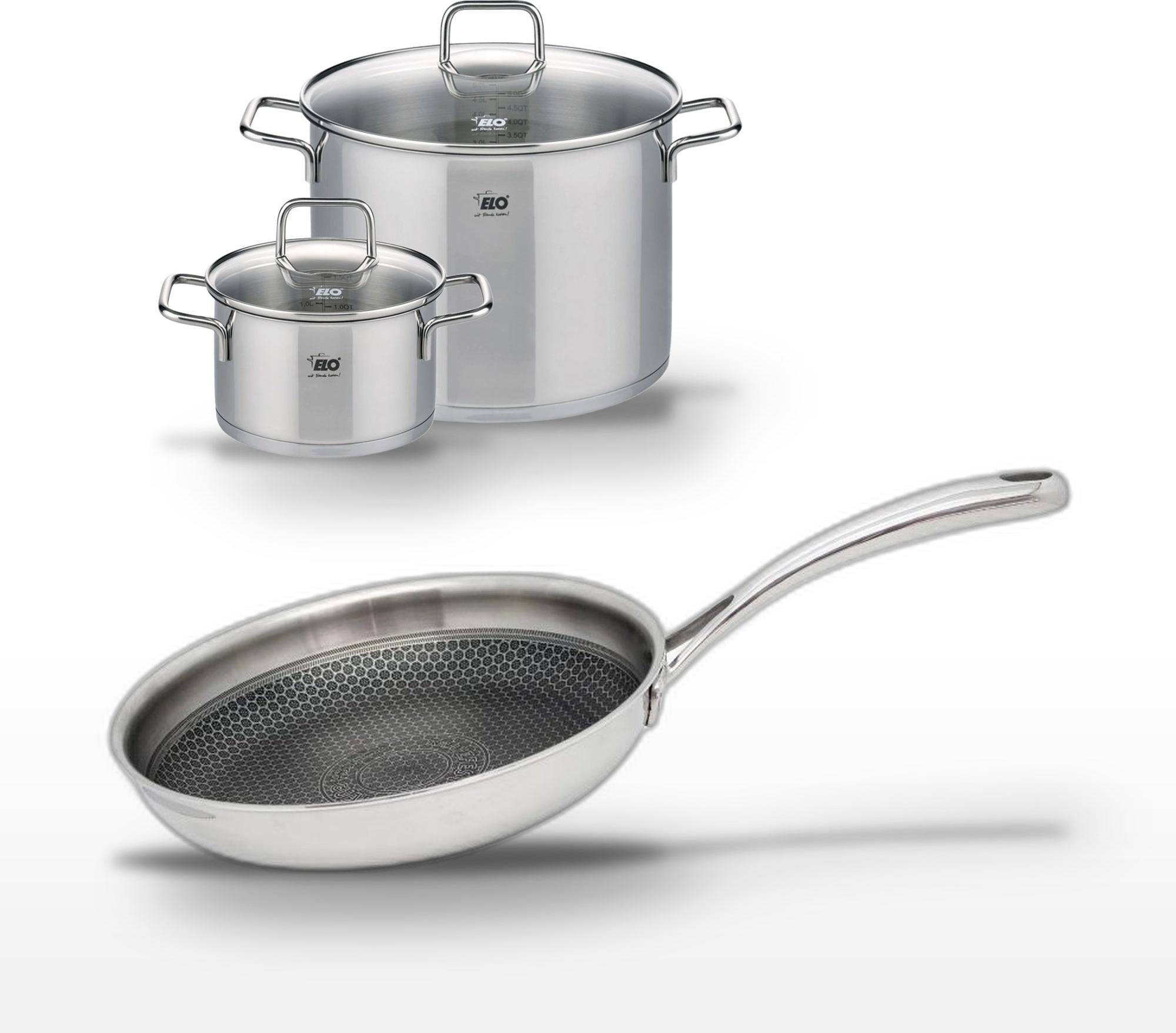 Lot de 3 Poêles céramique sans PFAS 24/28/32 cm Elo Profi Therm Platinum et Faitout 26 cm Elo Citrin