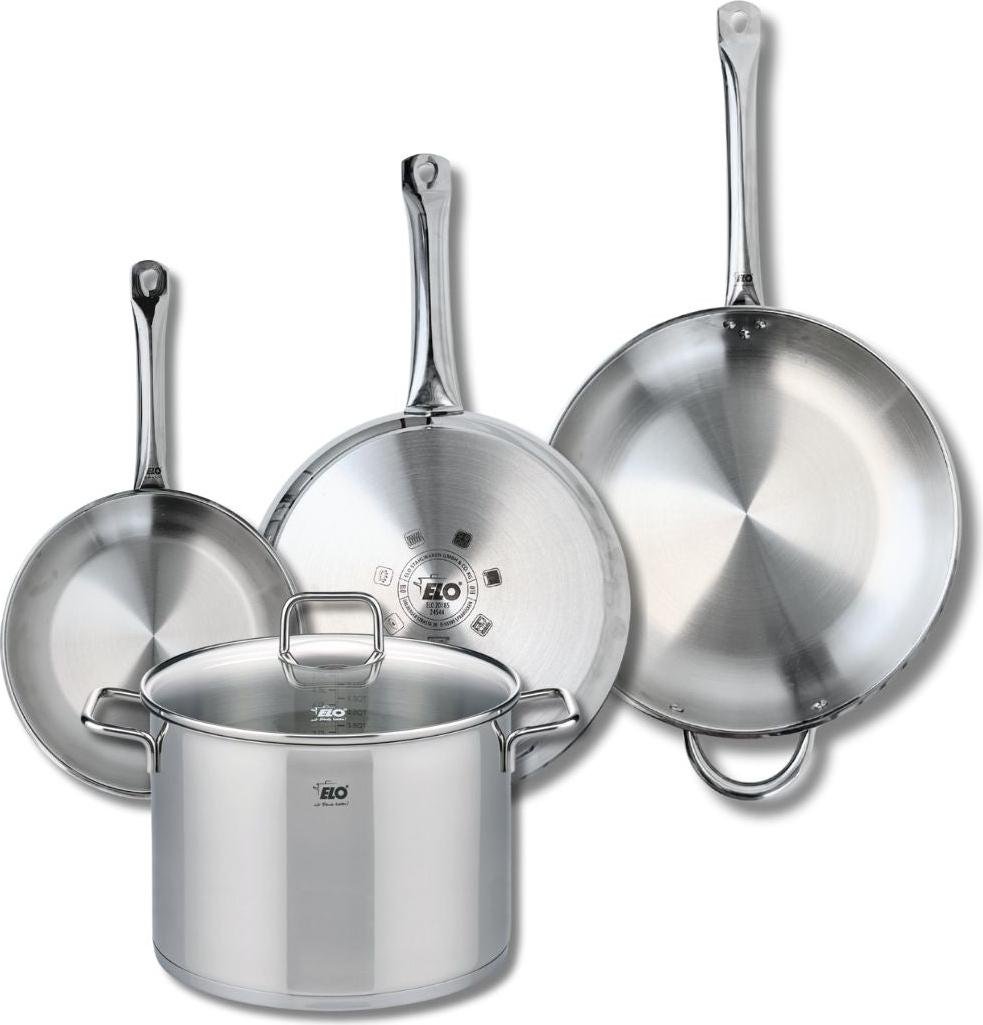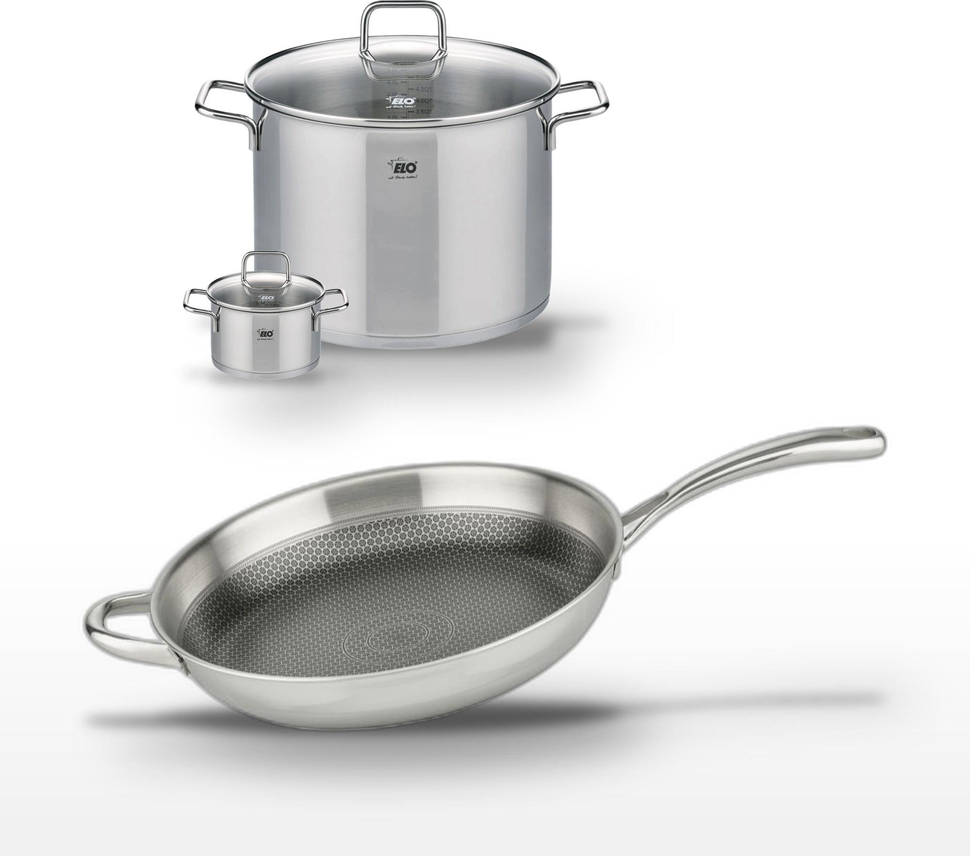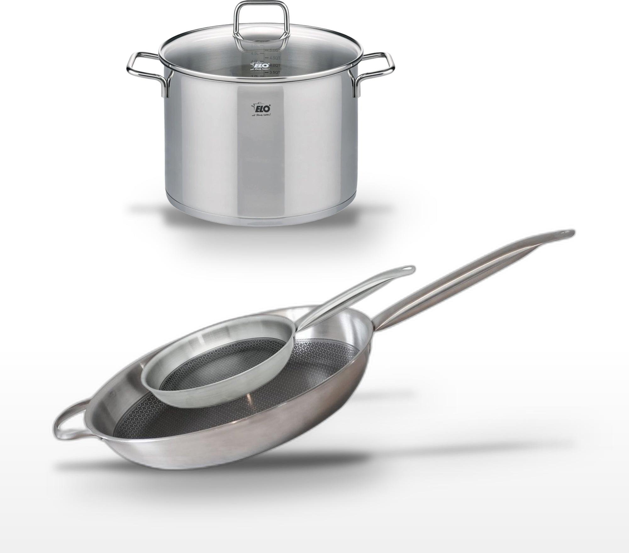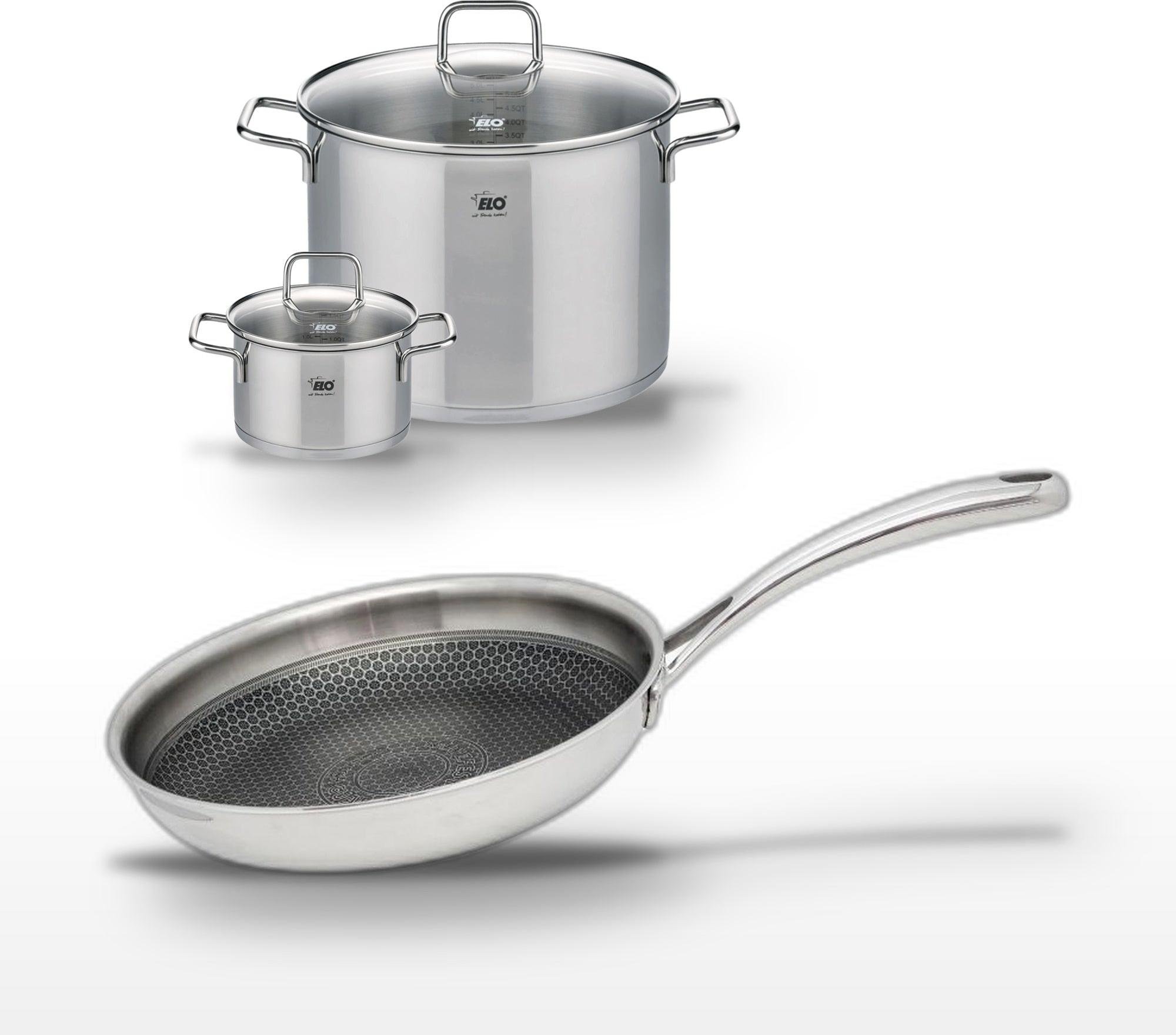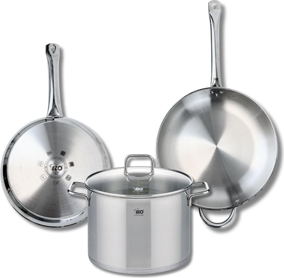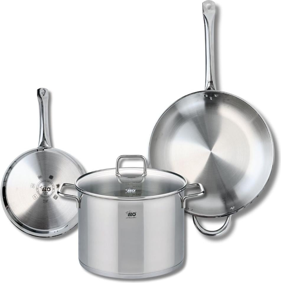 Lot de 3 Poêles céramique sans PFAS 24/28/32 cm Elo Profi Therm Platinum et Faitout 26 cm Elo Citrin