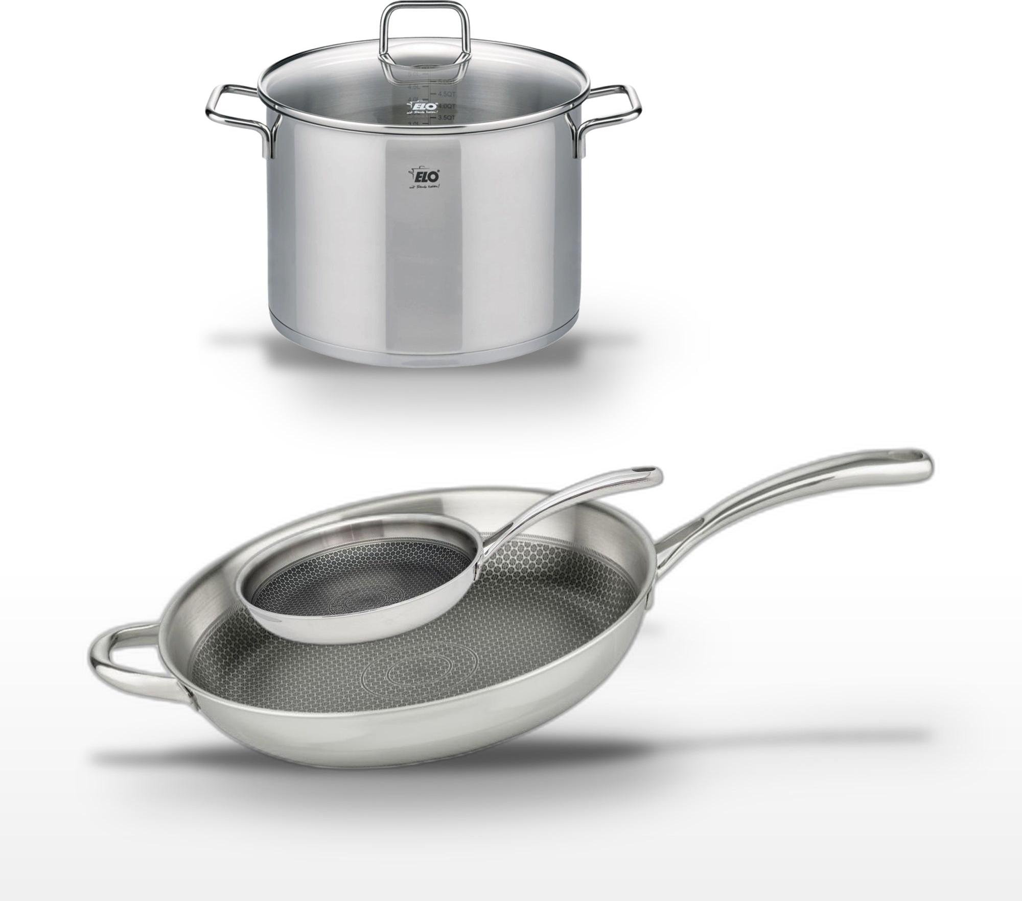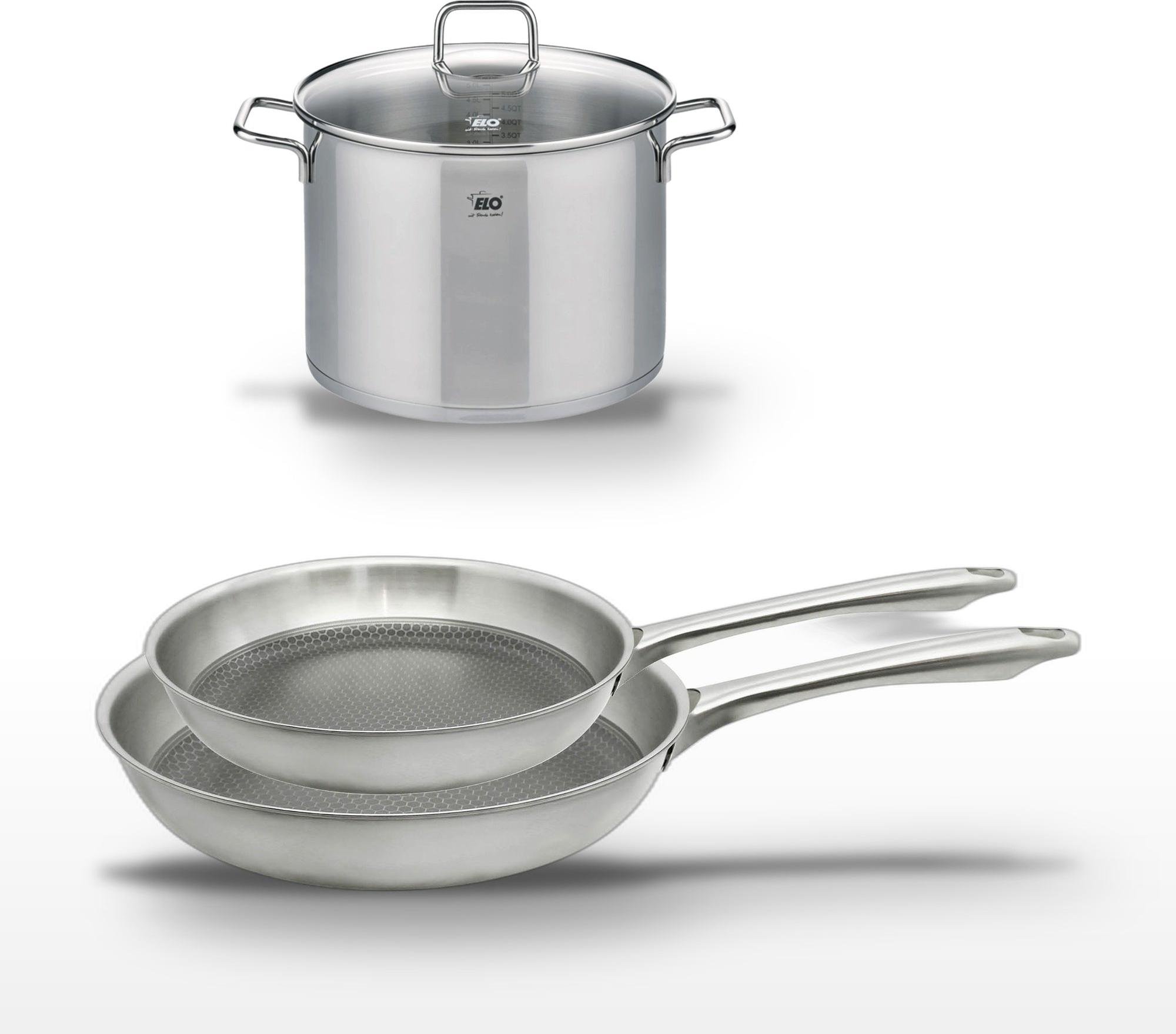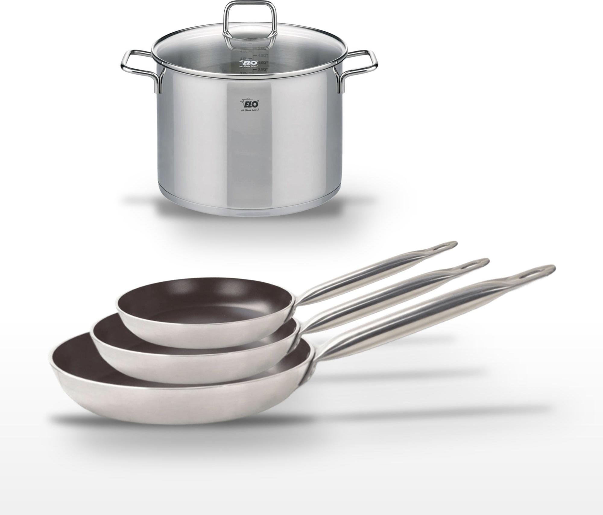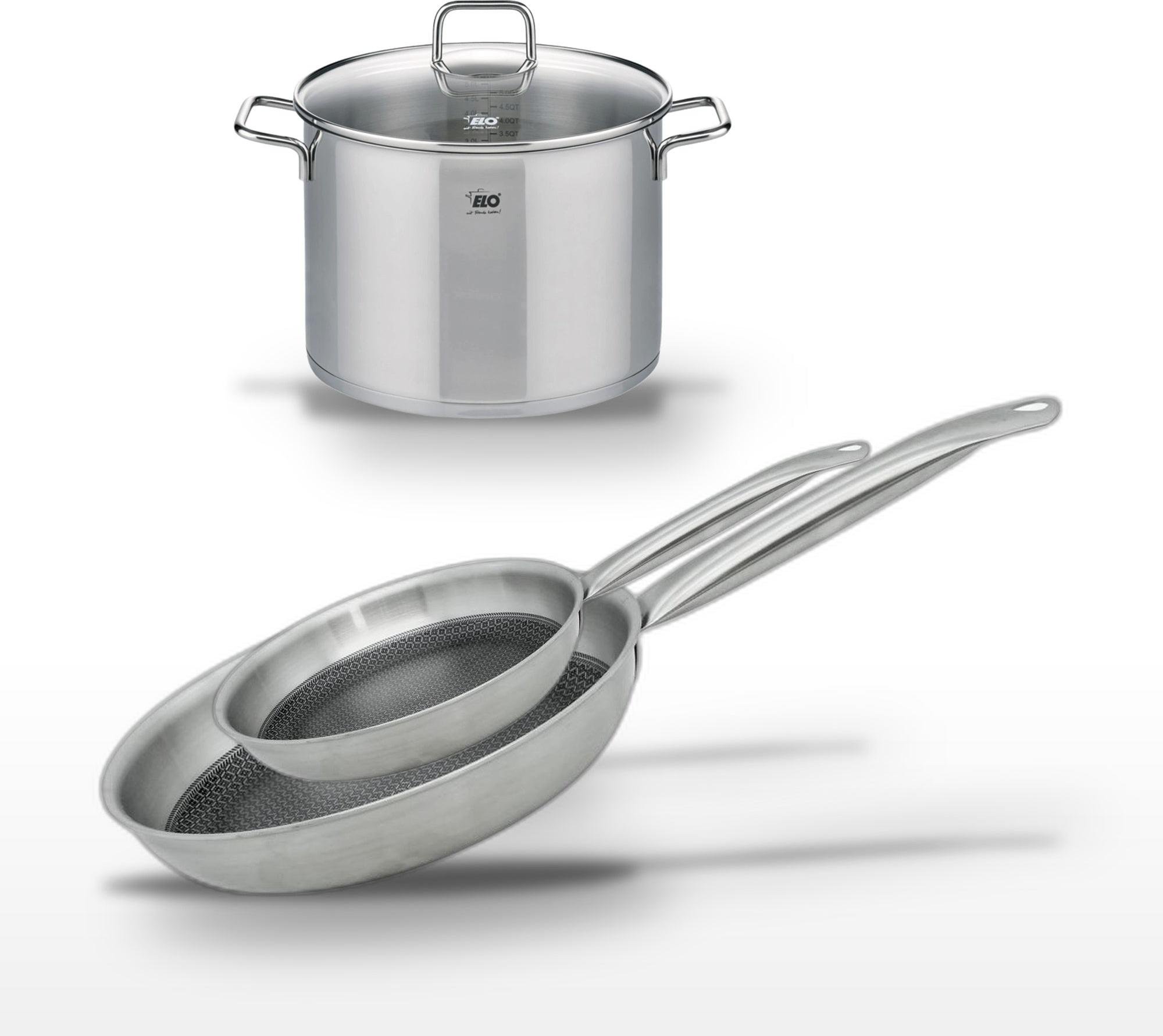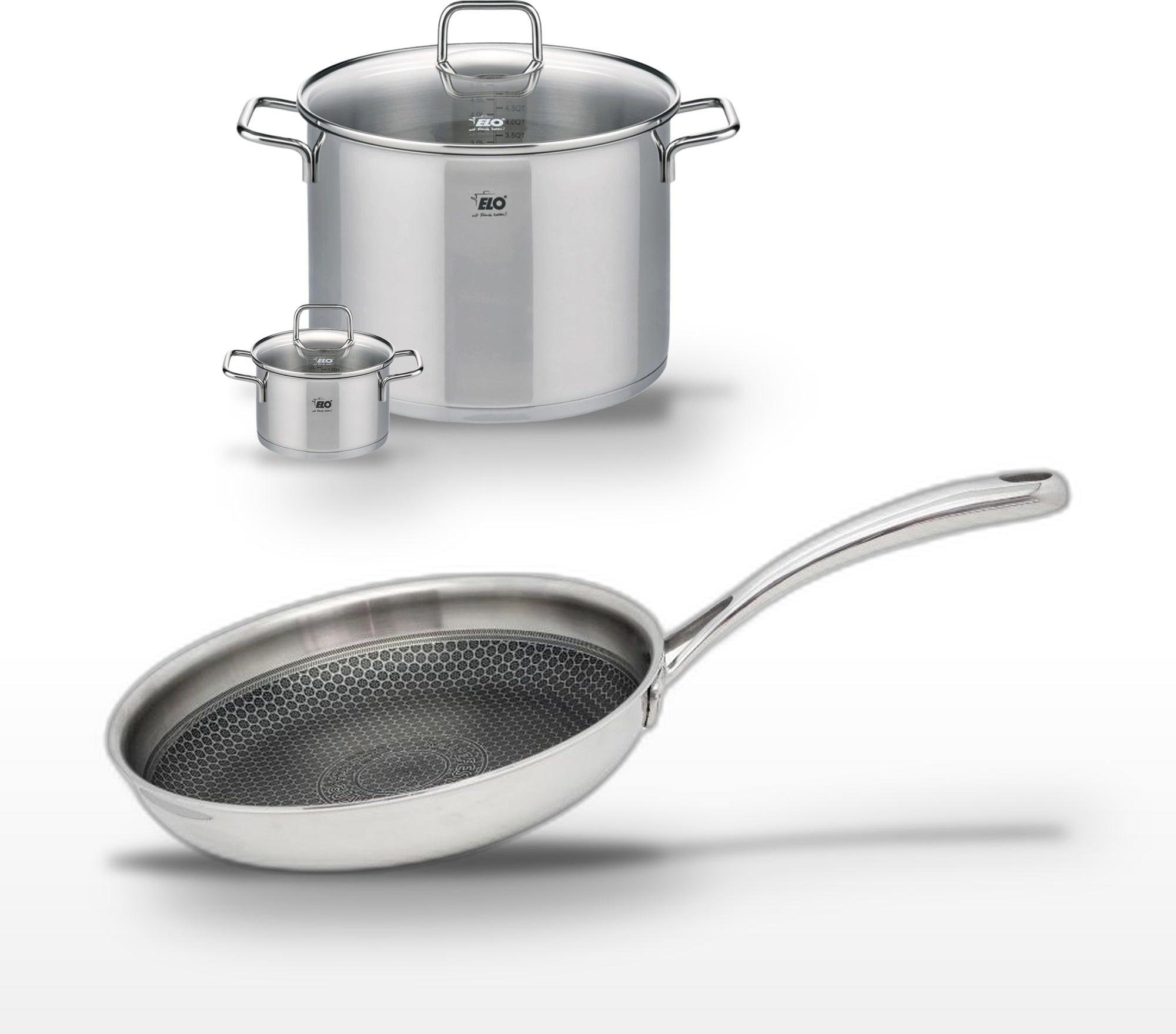 Lot de 3 Poêles céramique sans PFAS 24/28/32 cm Elo Profi Therm Platinum et Faitout 26 cm Elo Citrin