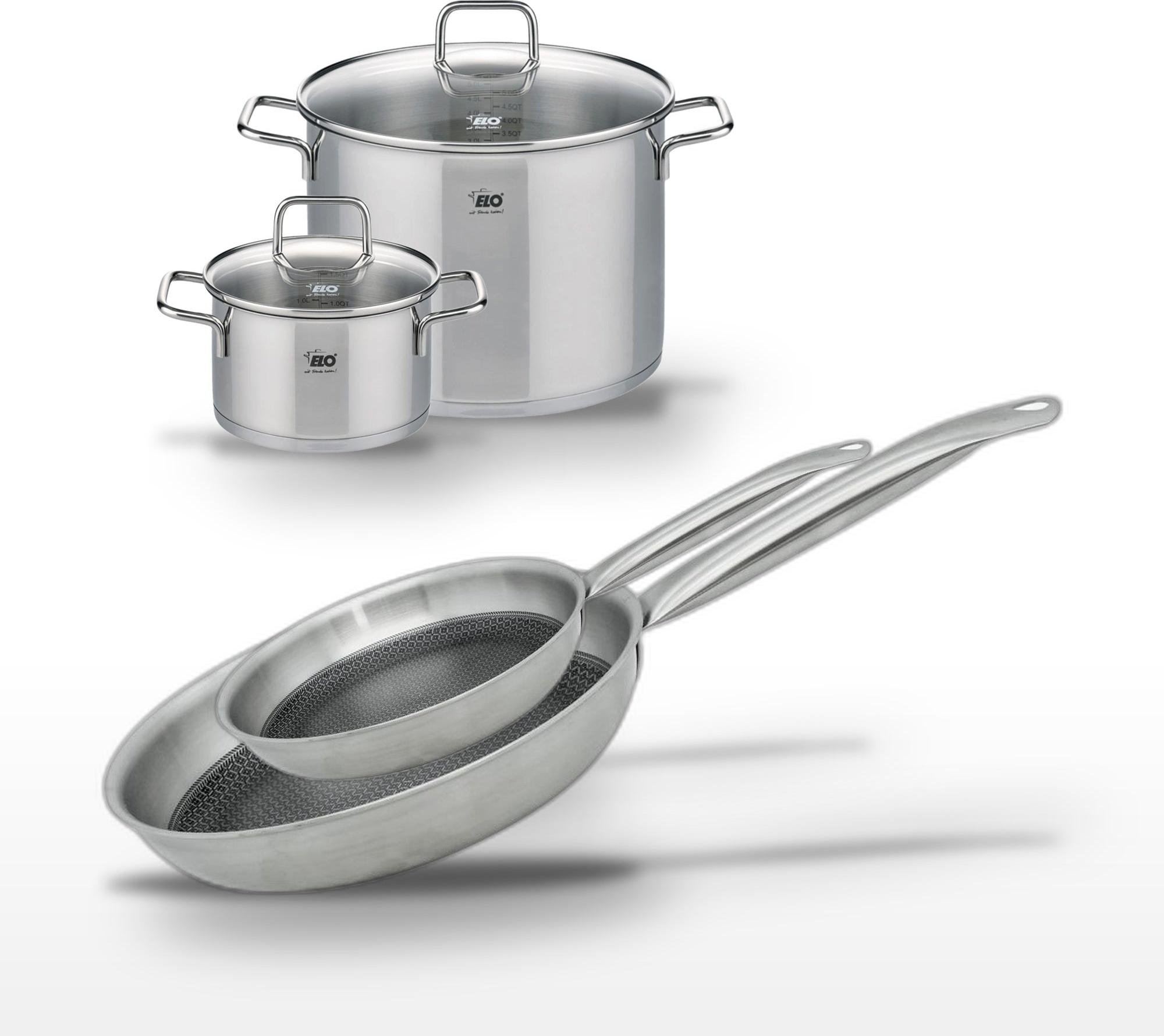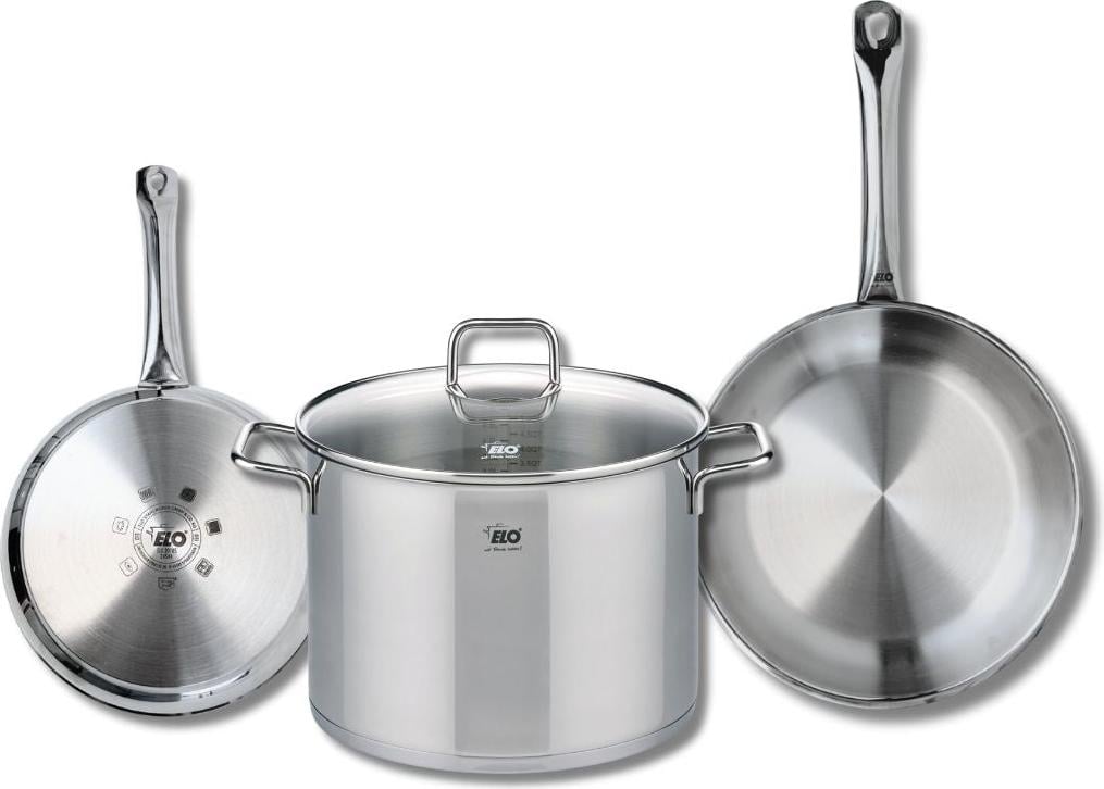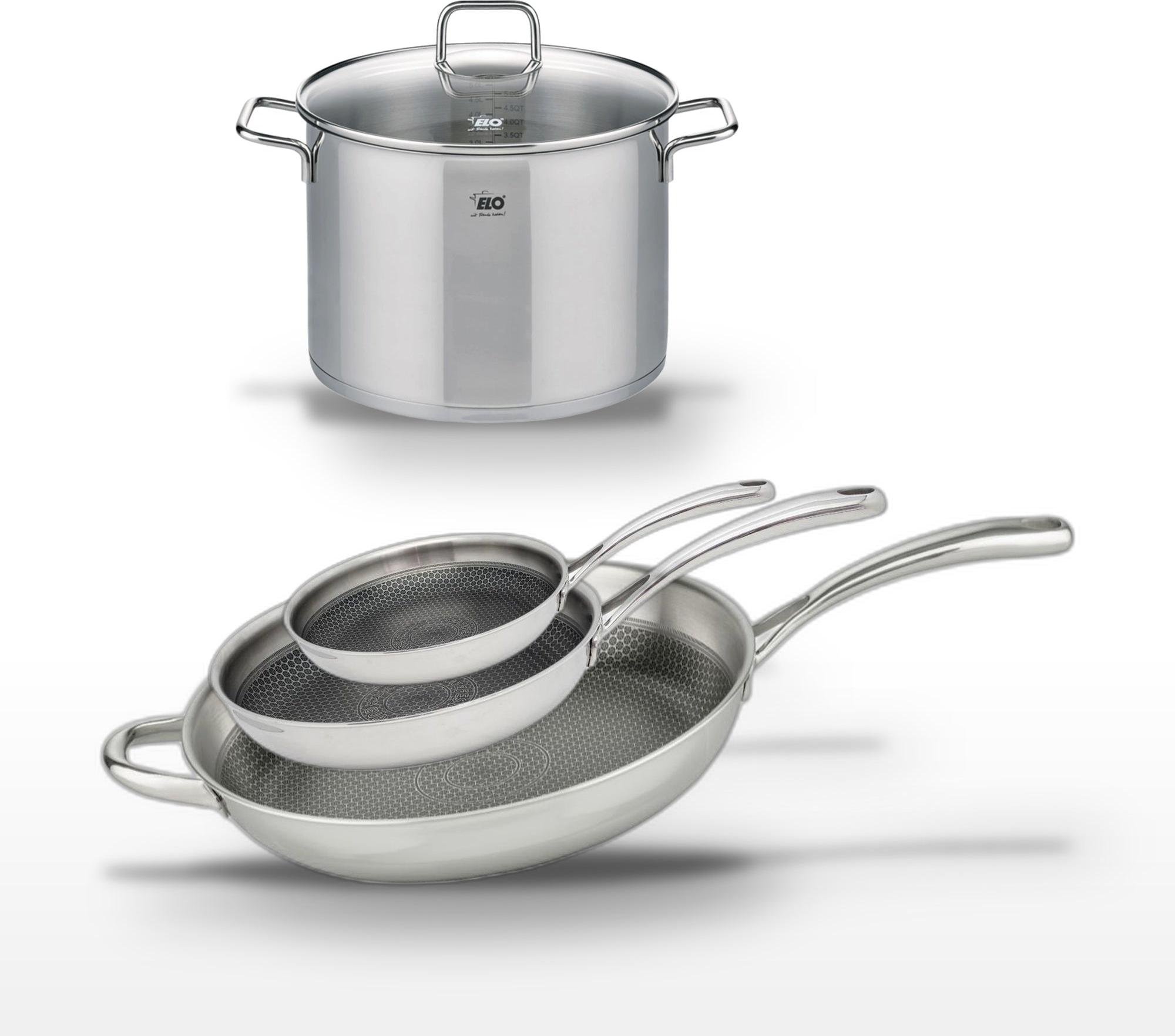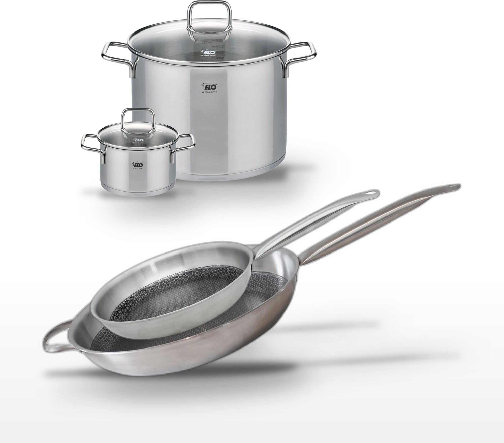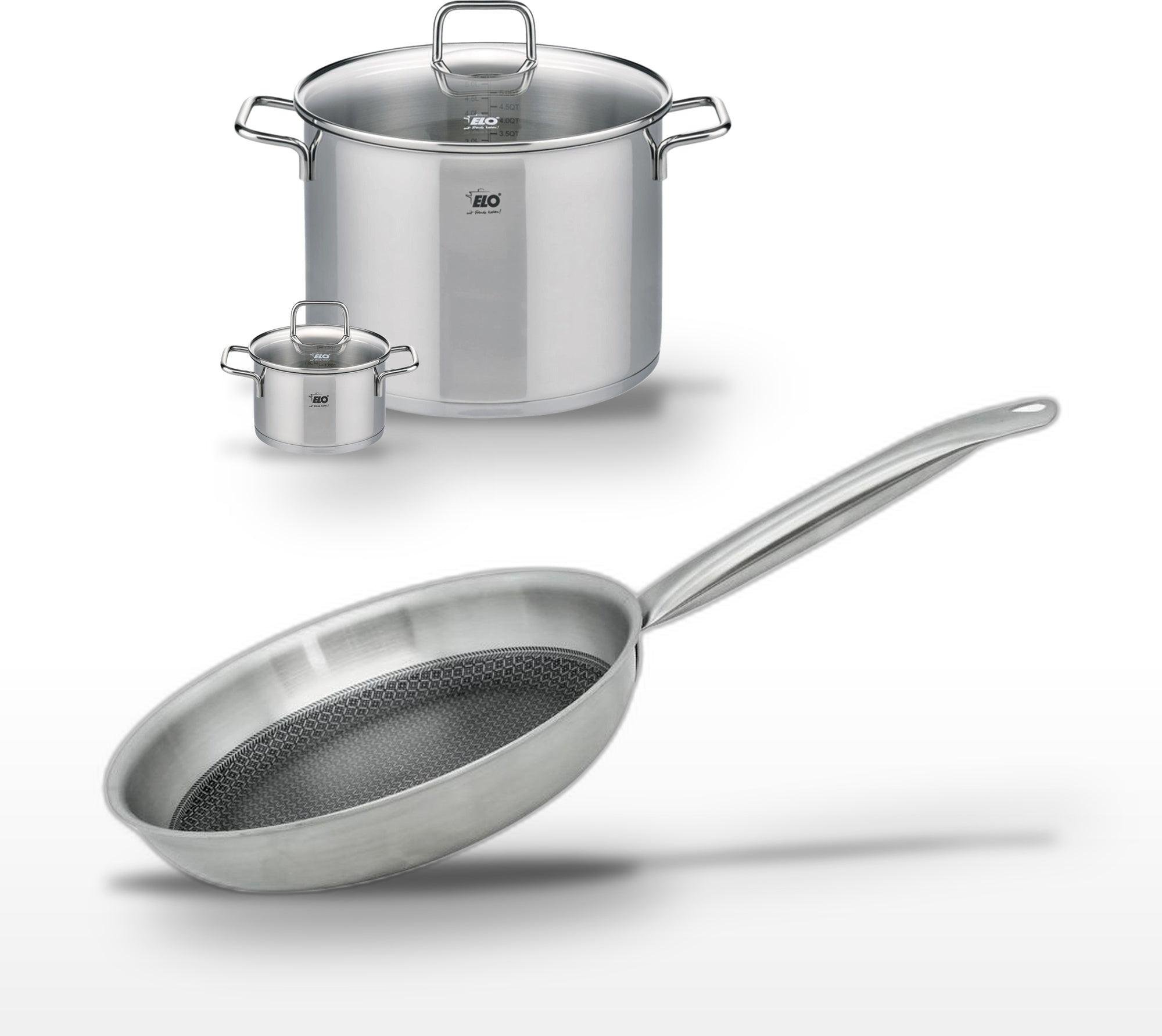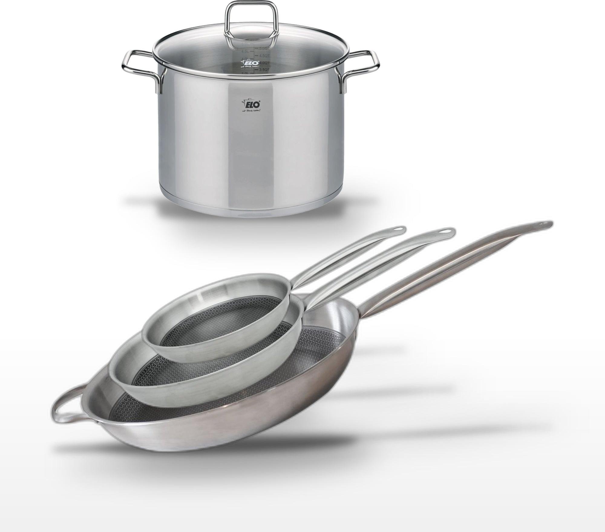 Lot de 3 Poêles céramique sans PFAS 24/28/32 cm Elo Profi Therm Platinum et Faitout 26 cm Elo Citrin