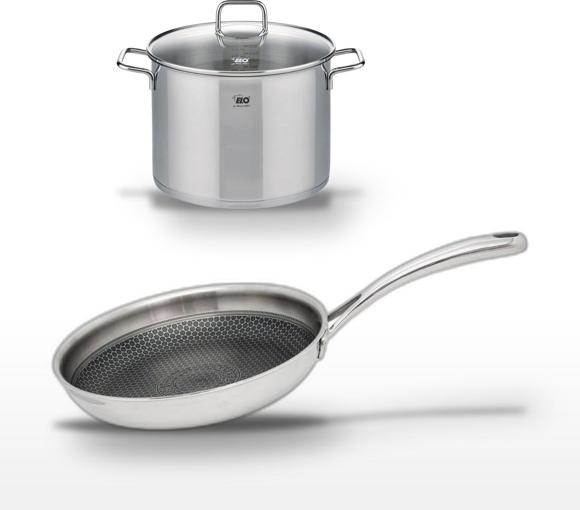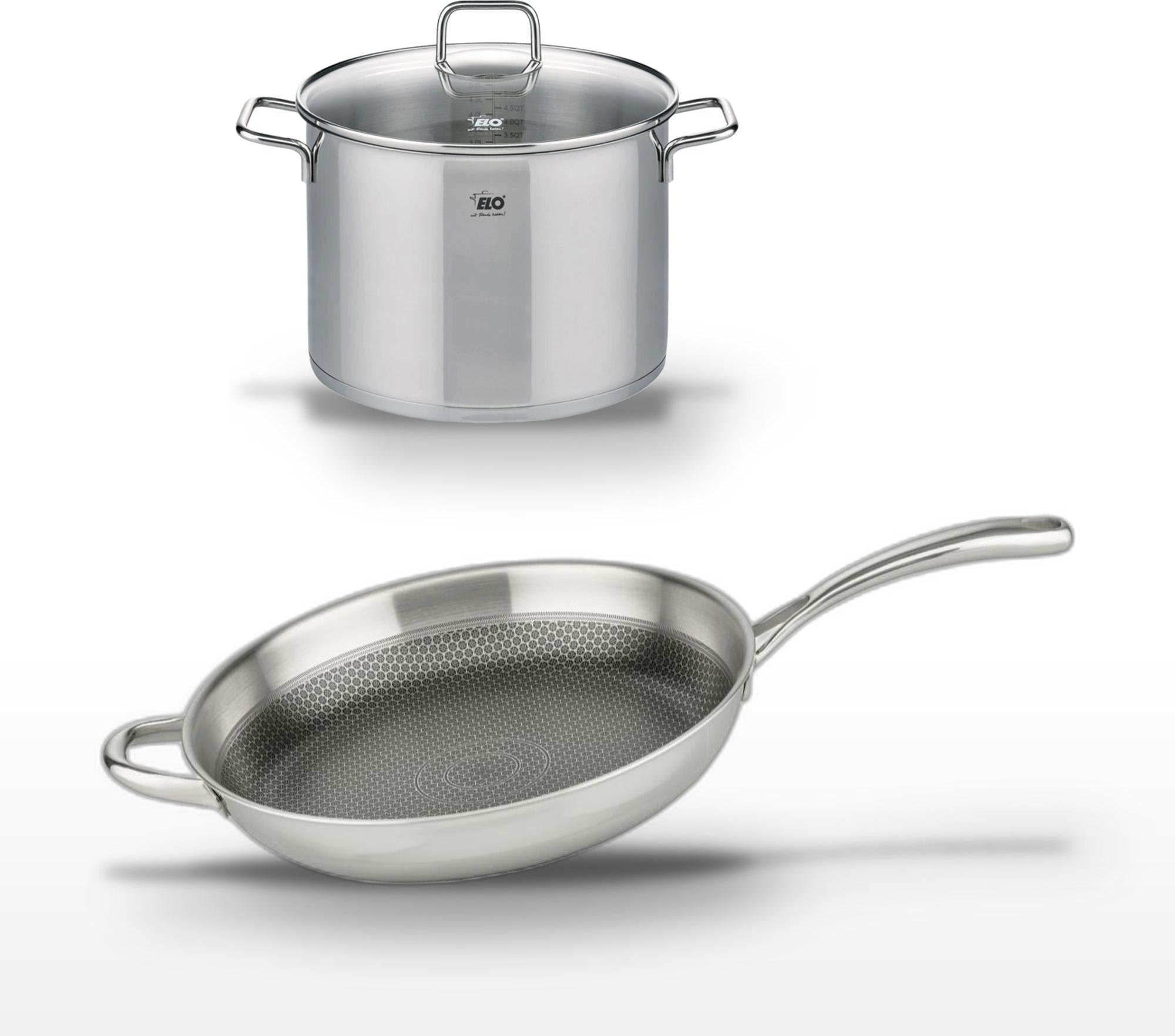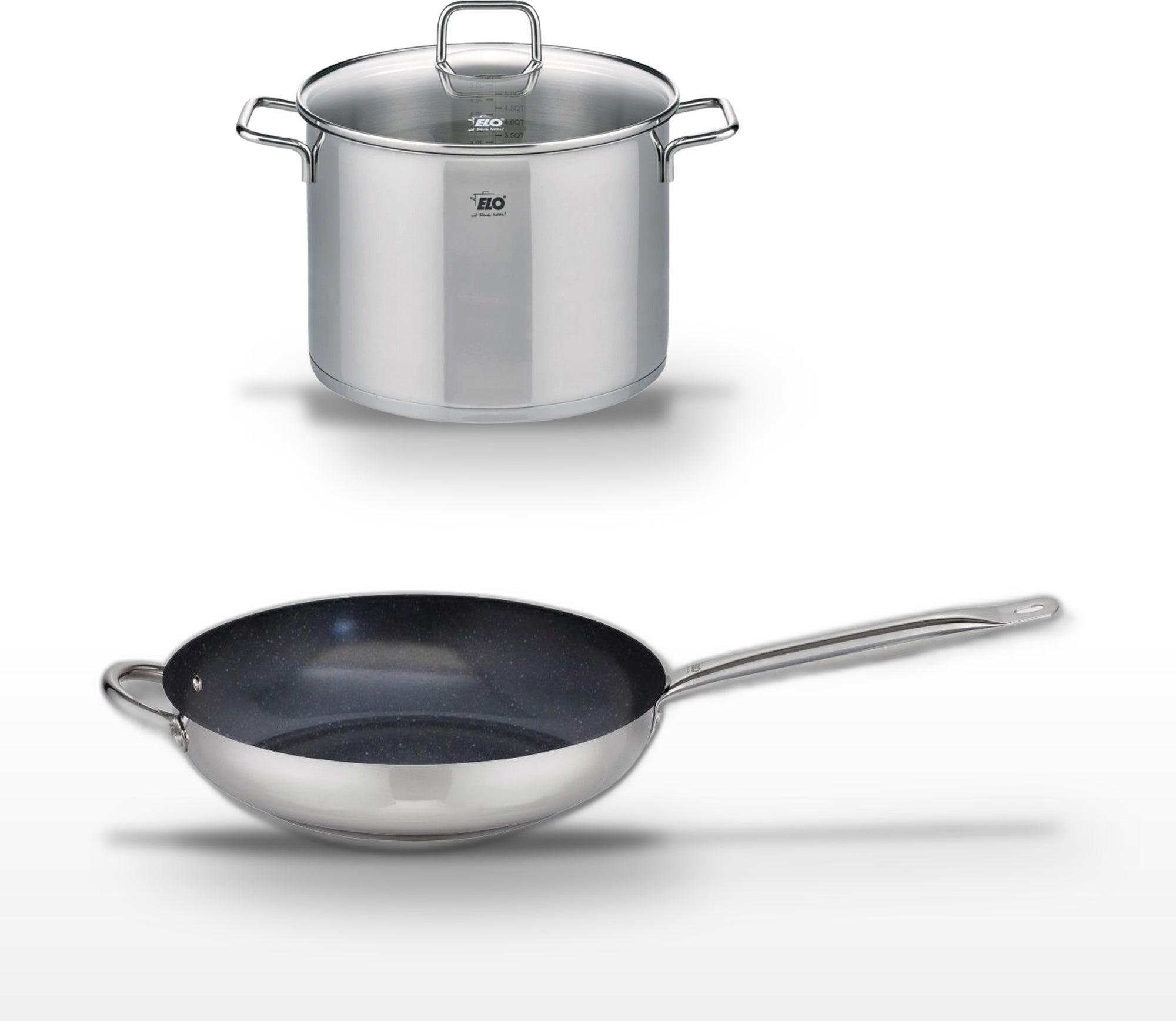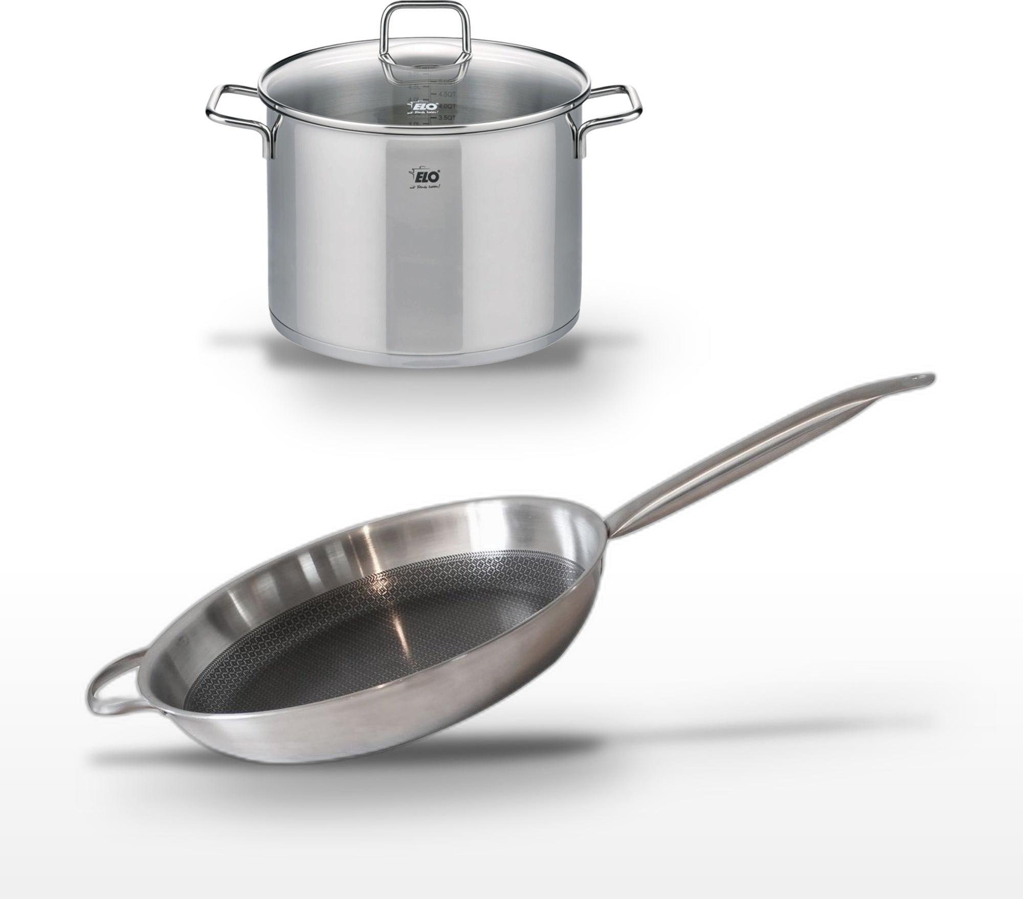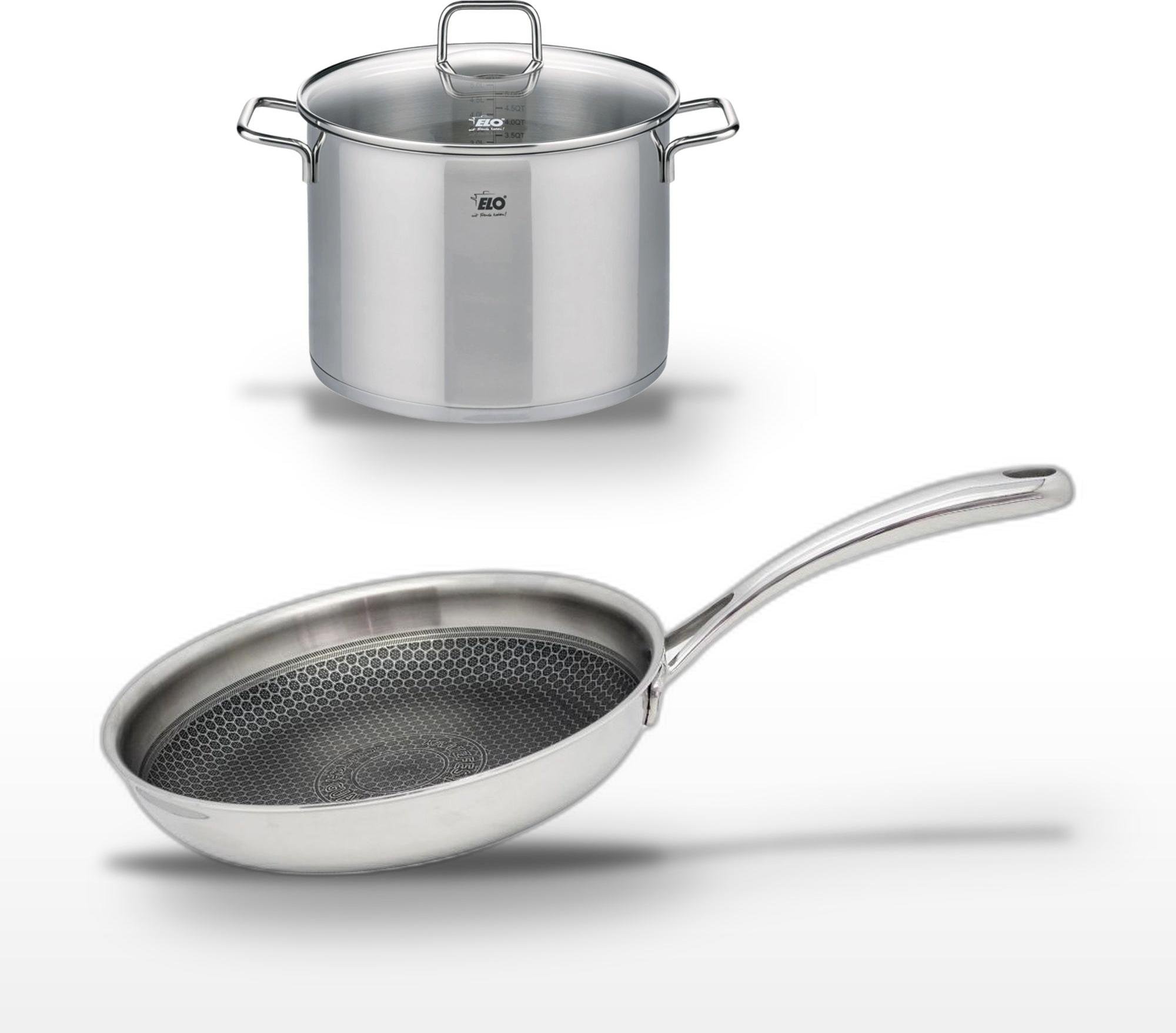 Lot de 3 Poêles céramique sans PFAS 24/28/32 cm Elo Profi Therm Platinum et Faitout 26 cm Elo Citrin