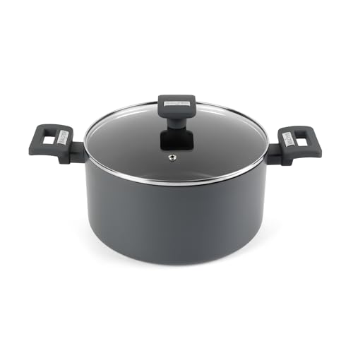 STONELINE Casserole 20 cm, 2,5 L, avec Couvercle en Verre, un faitout Compatible à l'Induction et au Four, Revêtement Antiadhésif avec de vraies particules de pierre, Gris