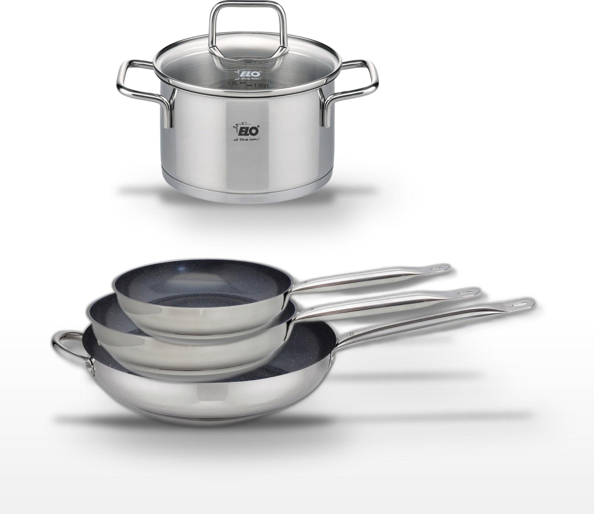 Lot de 3 Poêles céramique sans PFAS 24/28/32 cm Elo Profi Therm Platinum et Faitout 26 cm Elo Citrin
