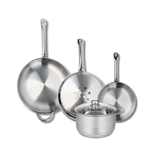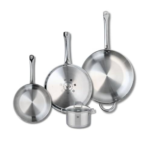 ELO 9884850 Batterie de cuisine 4 pièces, Ensemble de 3 Poêles de cuisson 24, 28 et 32 cm et 1 faitout 20 cm Elo Profi Brillant, inox, induction