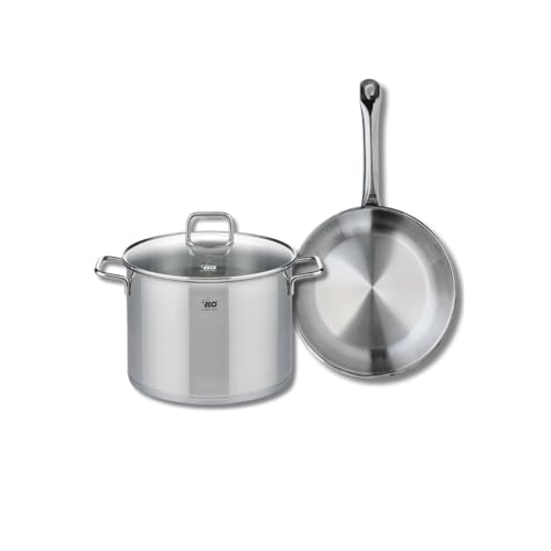 ELO 9869450 Batterie de cuisine 2 pièces, Ensemble de 1 Poêle de cuisson 28 cm et 1 faitout 24 cm Elo Profi Brillant, inox, induction