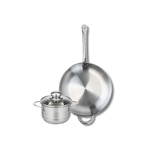 ELO 9865950 Batterie de cuisine 2 pièces, Ensemble de 1 Poêle de cuisson 24 cm et 1 faitout 12 cm Elo Profi Brillant, inox, induction, Gris Clair