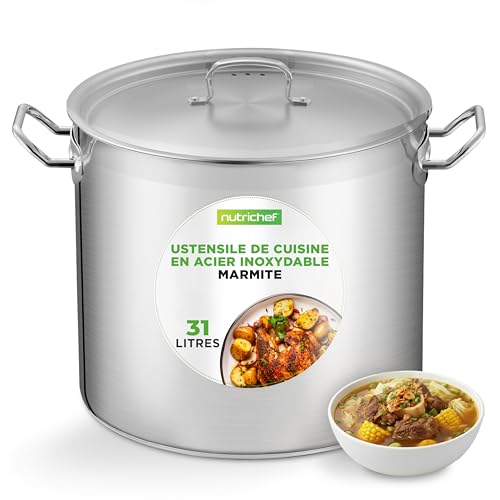 NutriChef Marmite Inox 35 QT (31 L) avec Couvercle – Grande Marmite à Soupe, Faitout Inox Tous Feux dont Induction – Grande Capacité Acier Inoxydable