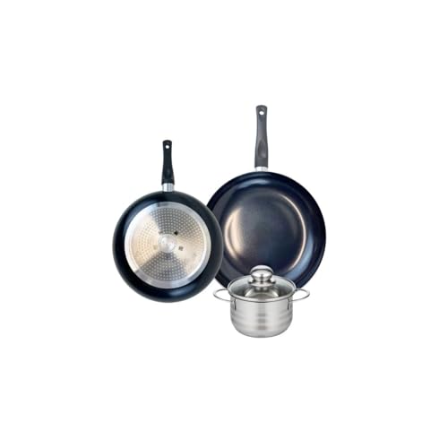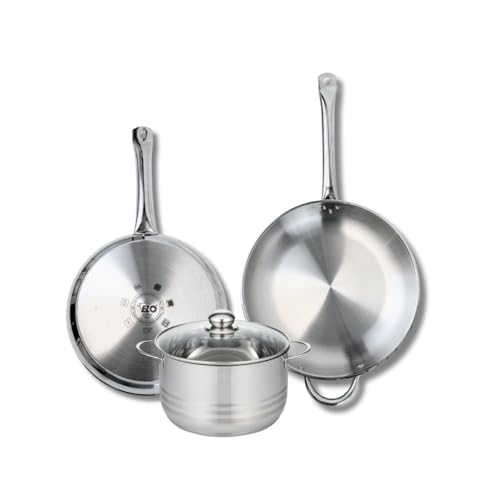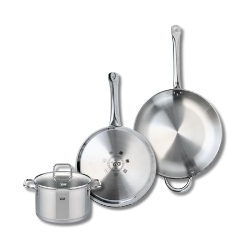 ELO 9737550 Batterie de cuisine 3 pièces, Ensemble de 2 Poêles de cuisson 28 et 32 cm et 1 faitout 20 cm Elo Prima Brillant, inox, induction