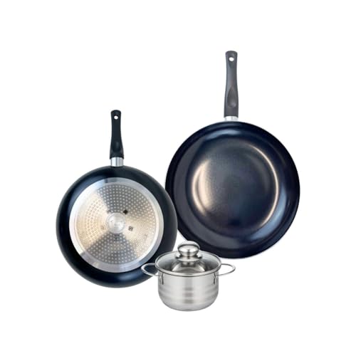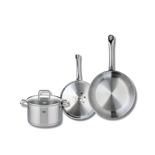 ELO 9737350 Batterie de cuisine 3 pièces, Ensemble de 2 Poêles de cuisson 28 et 32 cm et 1 faitout 14 cm Elo Prima Brillant, inox, induction