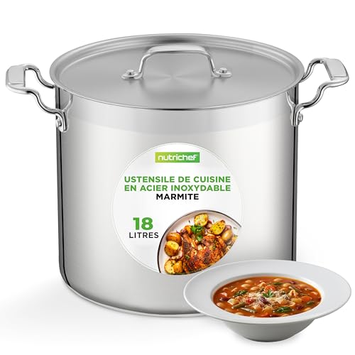 NutriChef Marmite Inox 24 QT (22 L) avec Couvercle – Faitout Professionnel en Acier Inoxydable 18/8 – Grande Marmite à Soupe, Bouillon – Tous Feux dont Induction – Lave-vaisselle