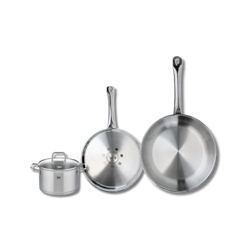 ELO 9722050 Batterie de cuisine 3 pièces, Ensemble de 2 Poêles de cuisson 20 et 24 cm et 1 faitout 20 cm Elo Prima Brillant, inox, induction