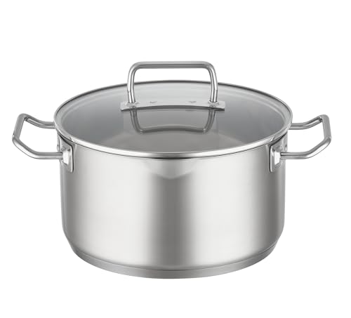 FLORINA Faitout Inox (4,8 l) I Diamètre de 22 cm I Marmite Inox OLIVER I Casserole Acier Inoxydable avec Couvercle en Verre I Faitout pour Induction, Marmite tous Feux I Convient au Lave-vaisselle