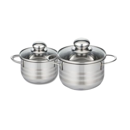 FLORINA Faitout Inox (1,3 l) I Diamètre de 14 cm I Marmite Inox OLIVER I Casserole Acier Inoxydable avec Couvercle en Verre I Faitout pour Induction, Marmite tous Feux I Convient au Lave-vaisselle