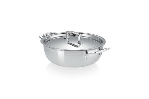 Le Creuset Faitout antiadhésif en acier inoxydable 3 couches, Ø 24 cm, convient pour tous les types de feux, y compris induction et four, argent, 53113240010550